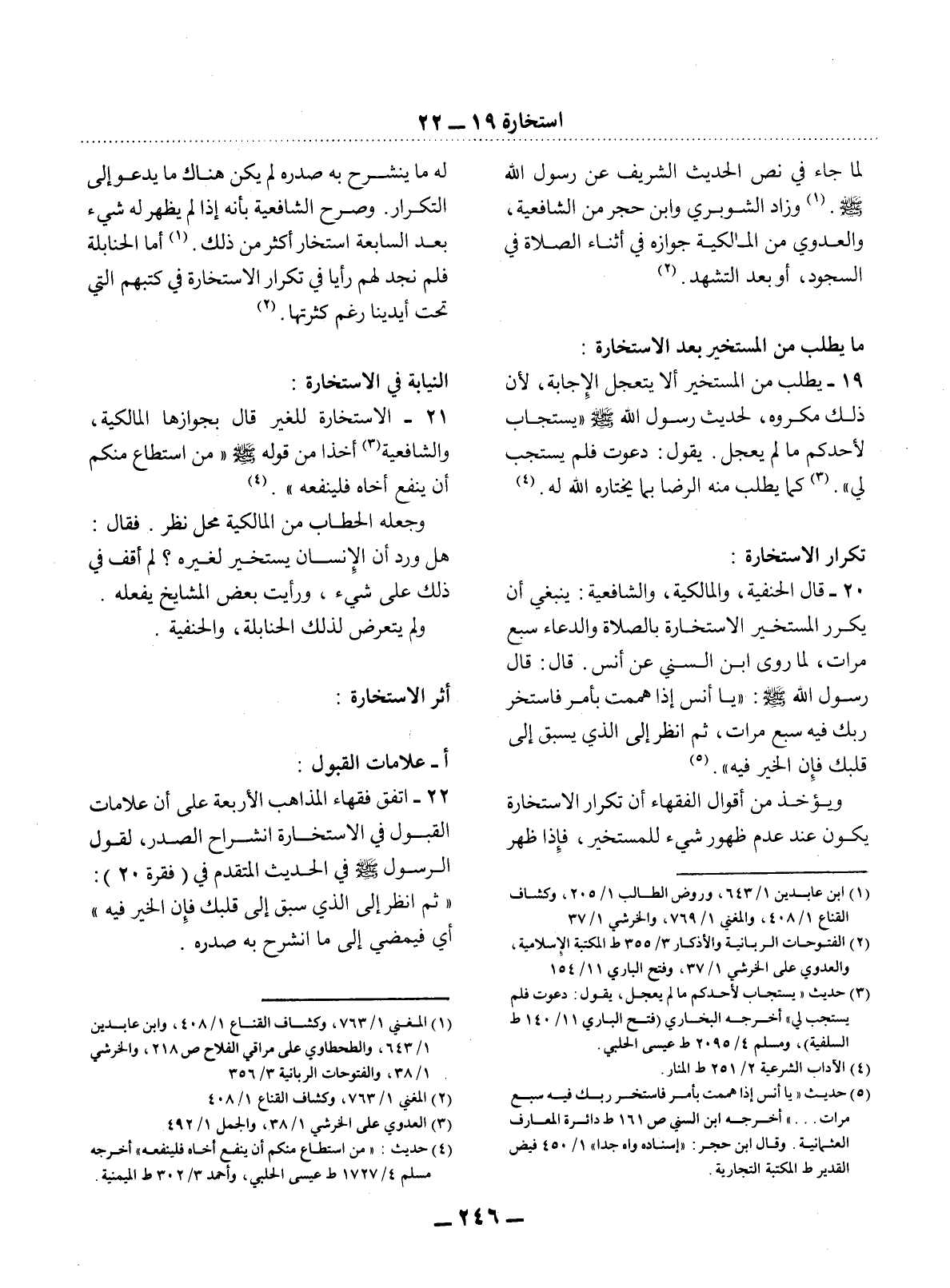 21 - الاِسْتِخَارَةُ لِلْغَيْرِ قَال بِجَوَازِهَا الْمَالِكِيَّةُ، وَالشَّافِعِيَّةُ (3) أَخْذًا مِنْ قَوْلِهِ صَلَّى اللَّهُ عَلَيْهِ وَسَلَّمَ مَنِ اسْتَطَاعَ مِنْكُمْ أَنْ يَنْفَعَ أَخَاهُ فَلْيَنْفَعْهُ. (4)