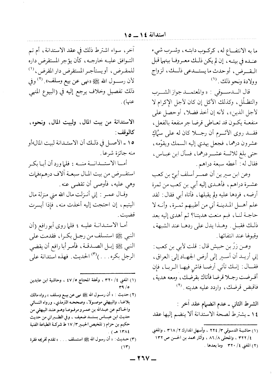 14 - يُشْتَرَطُ لِصِحَّةِ الاِسْتِدَانَةِ أَلاَّ يَنْضَمَّ إِلَيْهَا عَقْدٌ