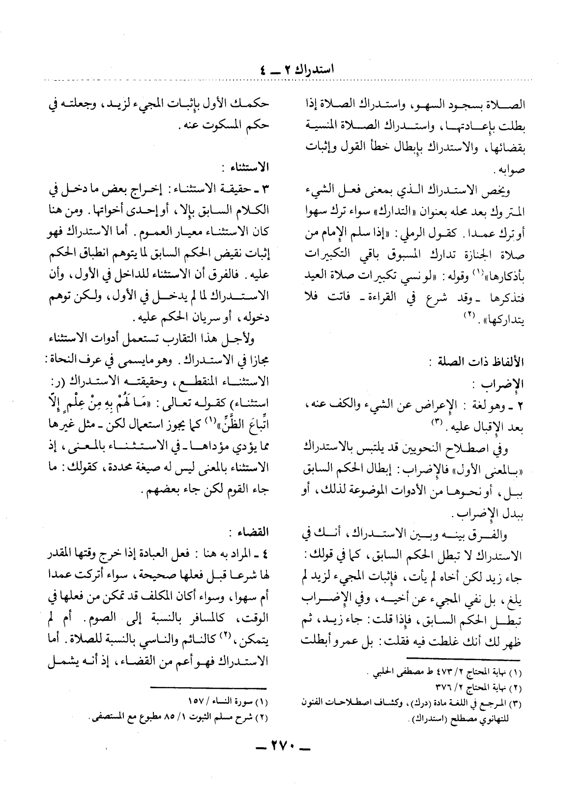 (3) المرجع في اللغة مادة (درك) ، وكشاف اصطلاحات الفنون للتهانوي مصطلح (استدراك) .