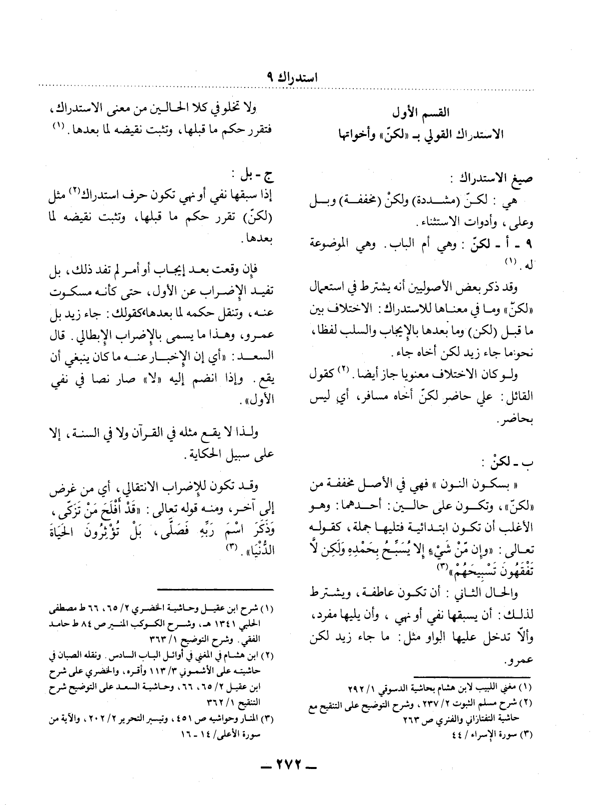الاِسْتِدْرَاكُ الْقَوْلِيُّ بِ " لَكِنَّ " وَأَخَوَاتِهَا