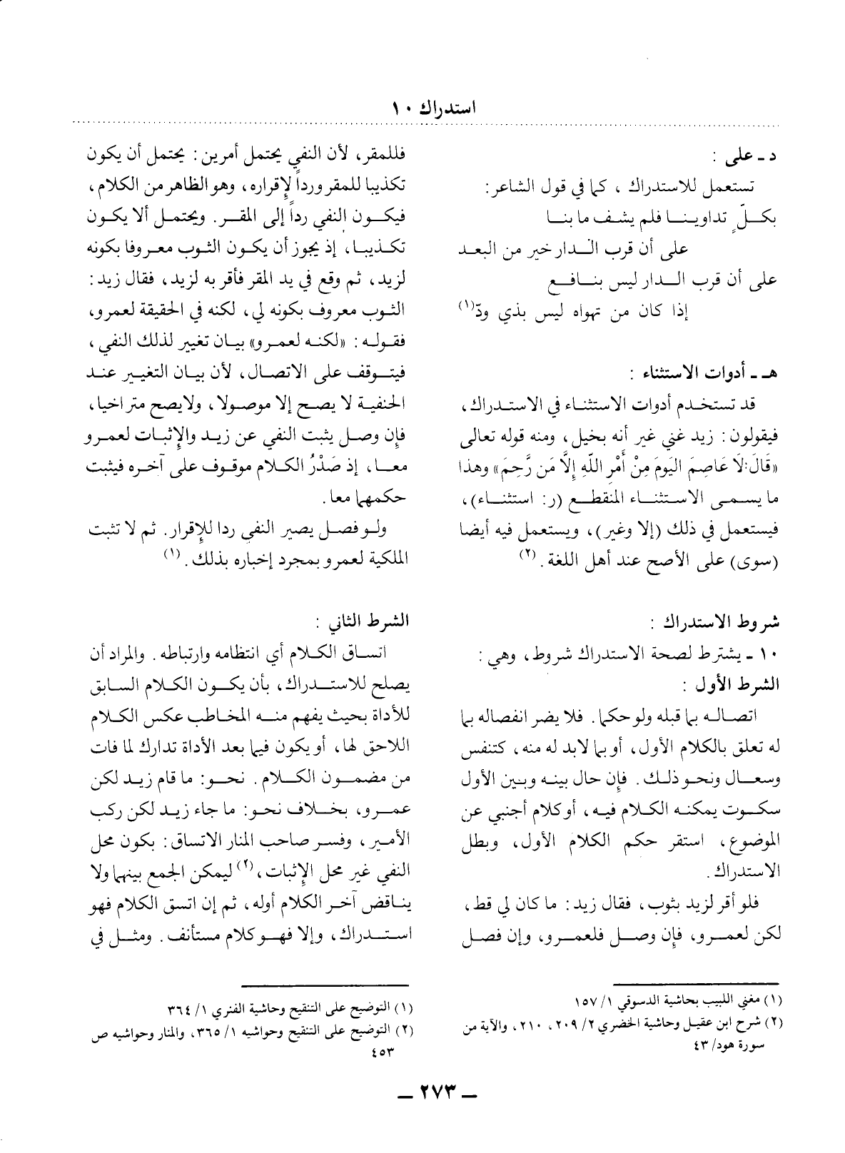 شُرُوطُ الاِسْتِدْرَاكِ: