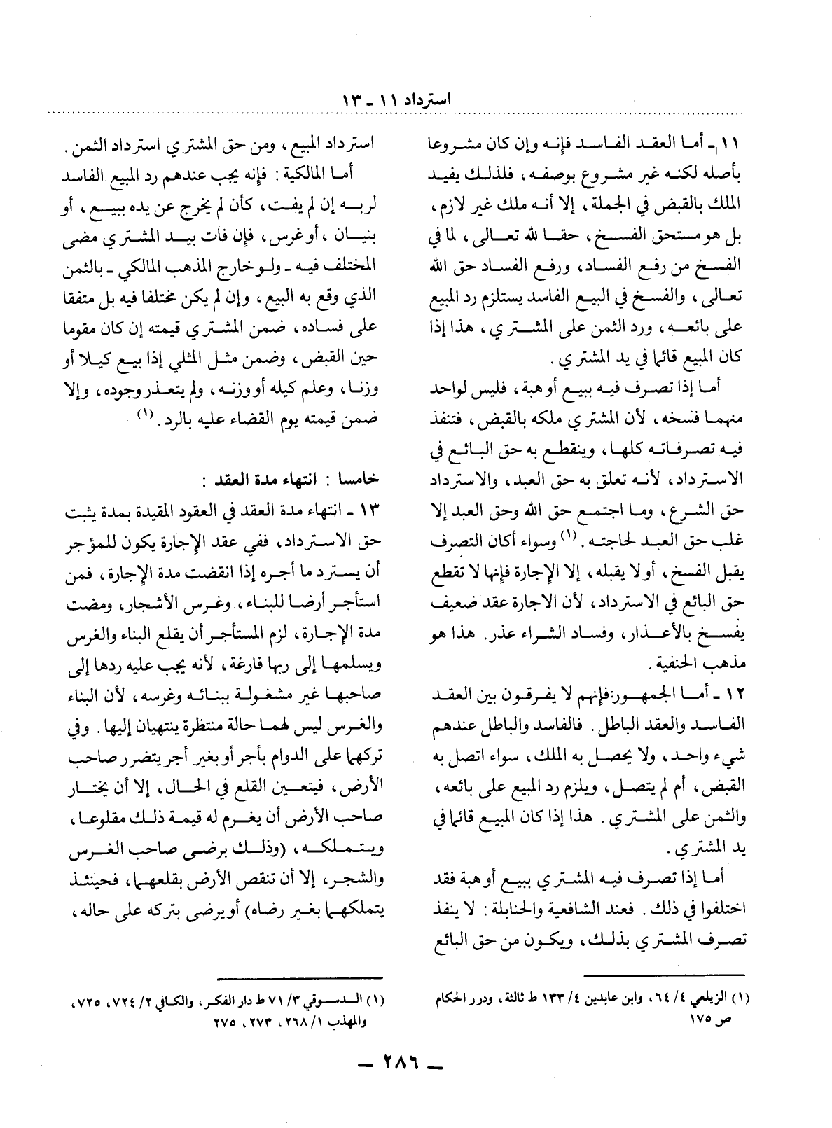 (1) الزيلعي 4 / 64، وابن عابدين 4 / 133 ط ثالثة، ودرر الحكام ص 175