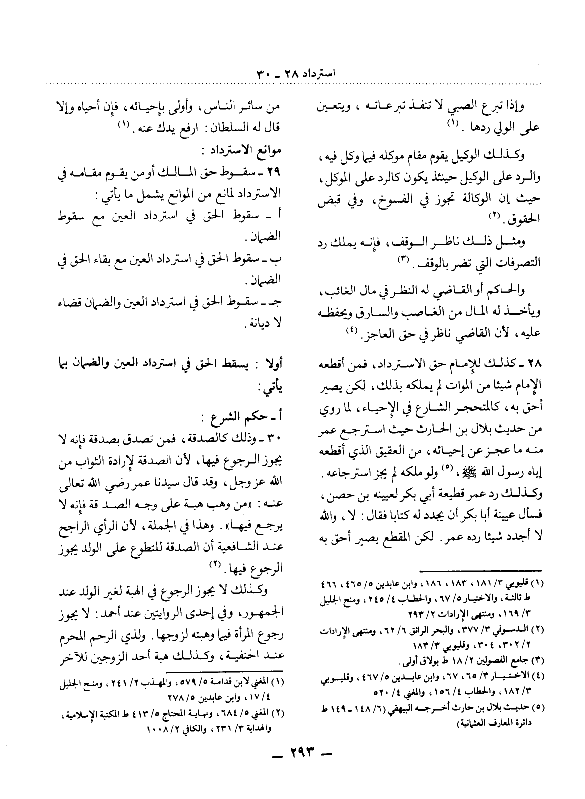 (1) المغني لابن قدامة 5 / 579، والمهذب 2 / 241، ومنح الجليل 4 / 17، وابن عابدين 5 / 278