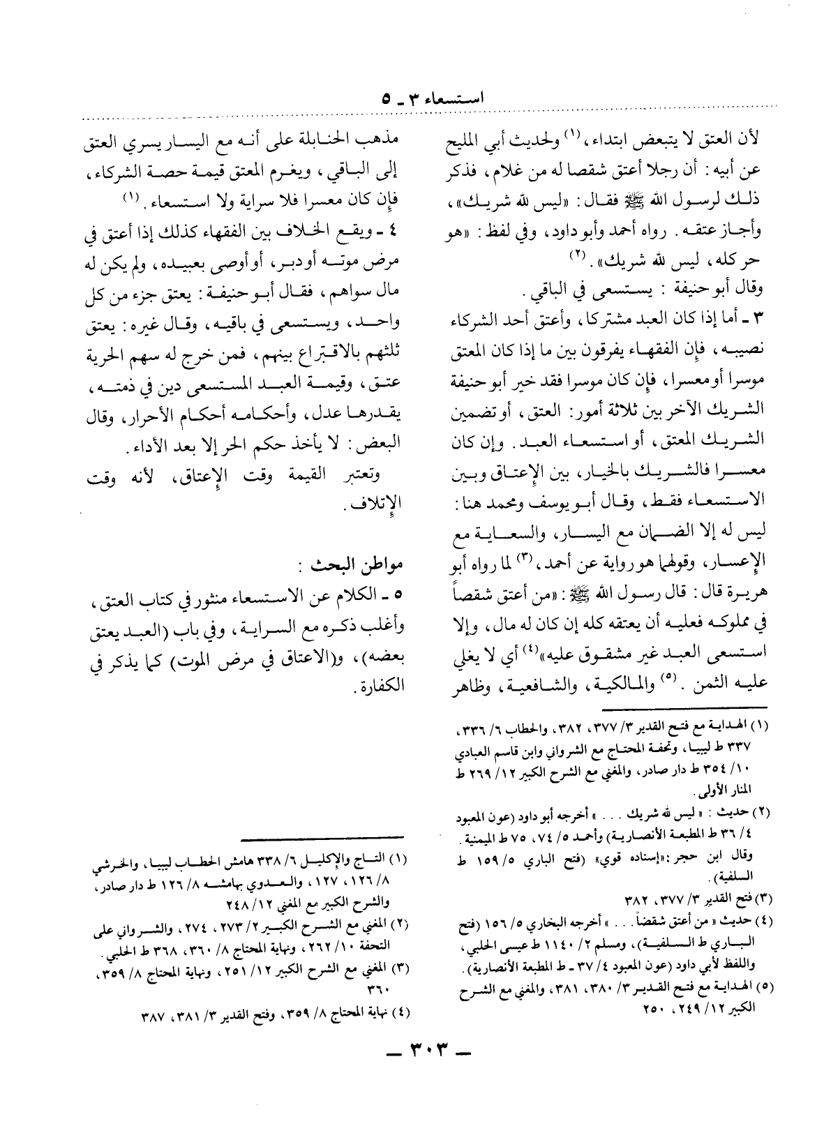 (4) حديث " منى أعتق شقصا. . . " أخرجه البخاري 5 / 156 (فتح الباري ط السلفية) ، ومسلم 2 / 1140 ط عيسى الحلبي، واللفظ لأبي داود، (عون المعبود 4 / 37 - ط المطبعة الأنصارية) .
