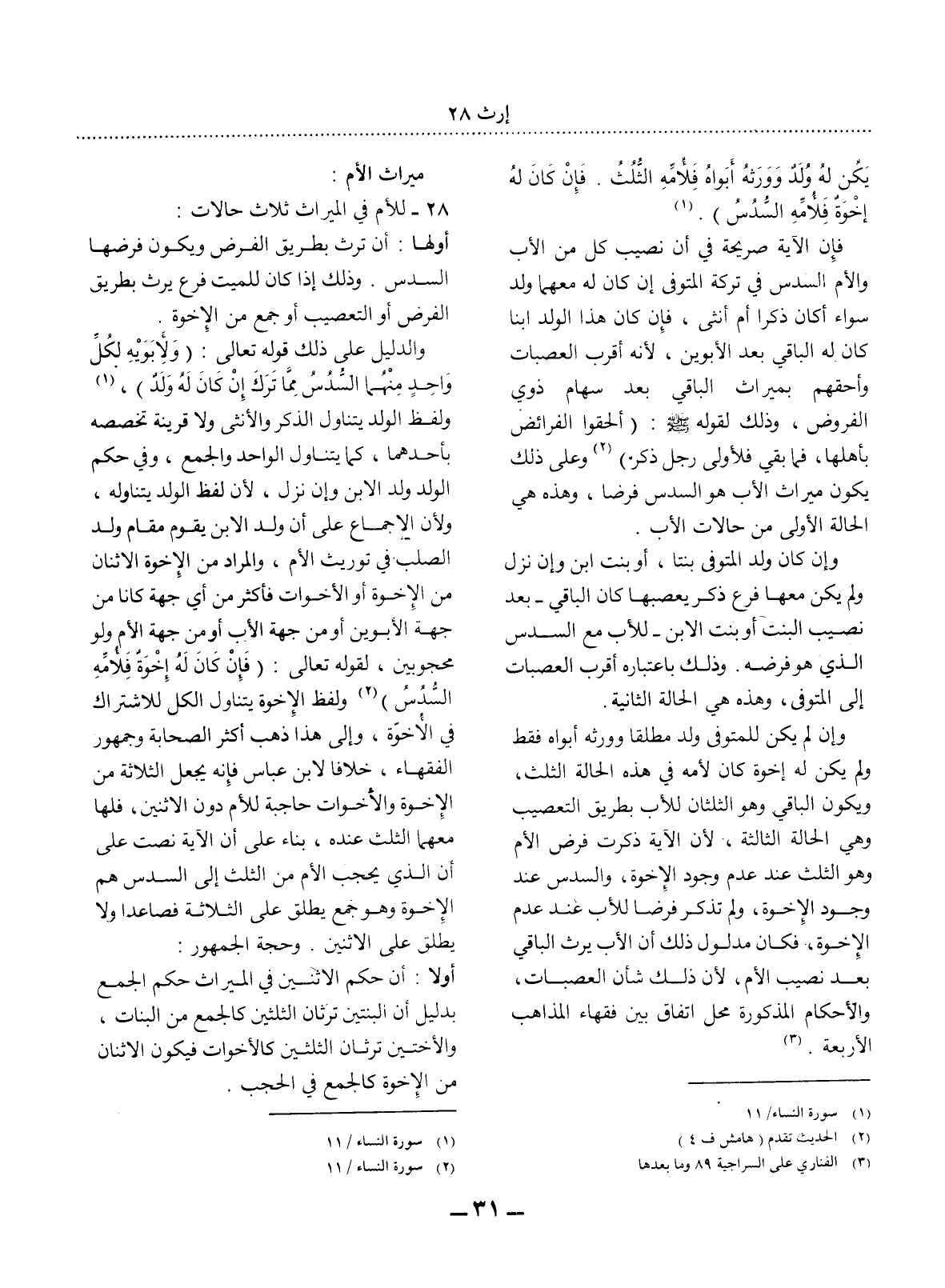 28 - لِلأُْمِّ فِي الْمِيرَاثِ ثَلاَثُ حَالاَتٍ: