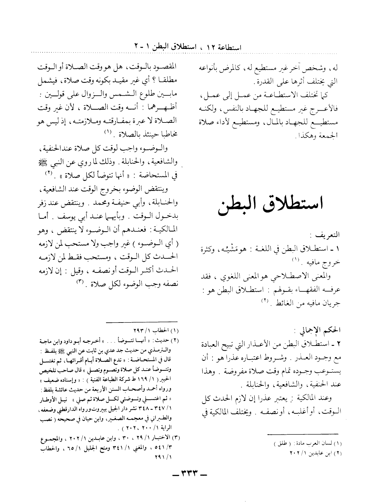 (3) الاختيار 1 / 29، 30، وابن عابدين 1 / 202، والمجموع 3 / 541، والمغني 1 / 341 ومنح الجليل 1 / 65، والحطاب 1 / 291