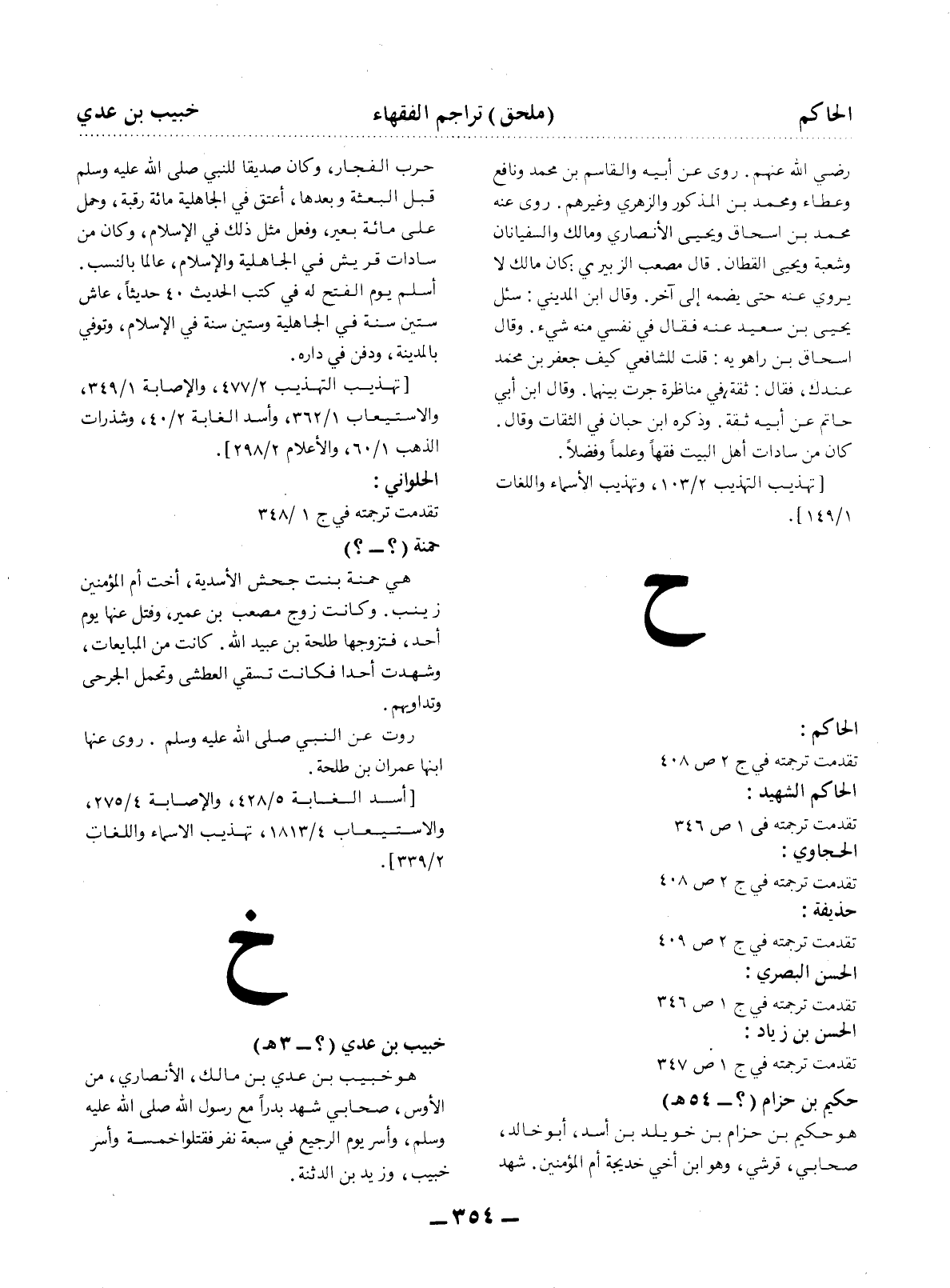 [تهذيب التهذيب 2 / 477، والإصابة 1 / 349، والاستيعاب 1 / 362، وأسد الغابة 2 / 40، وشذرات الذهب 1 / 60، والأعلام 2 / 298] .