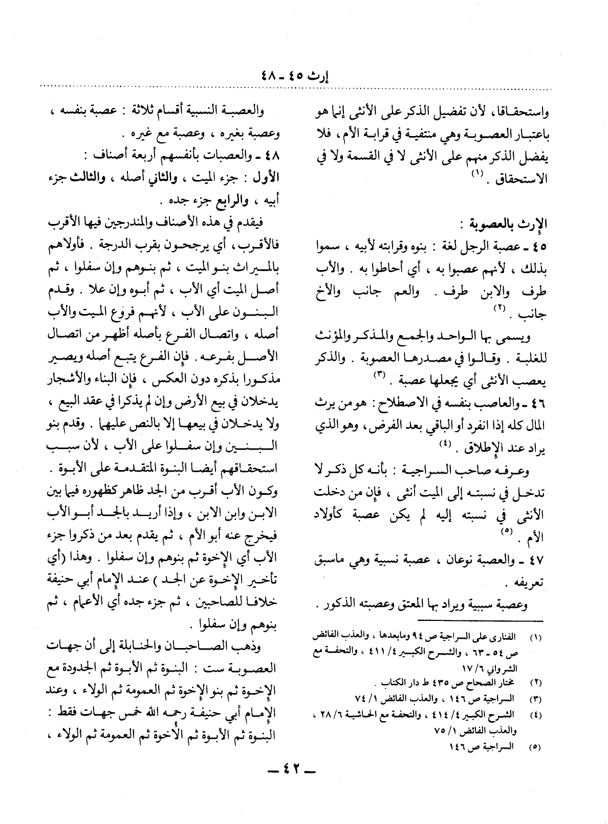 (1) الفناري على السراجة ص 94 وما بعدها، والعذب الفائض ص 54 - 63، والشرح الكبير 4 / 411، والتحفة مع الشرواني 6 / 17