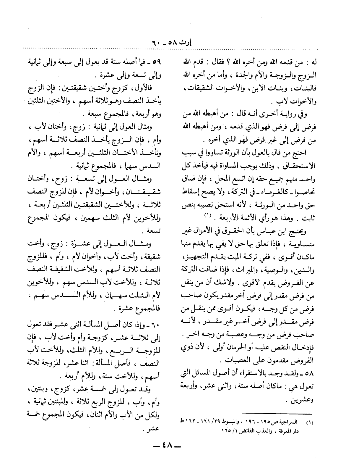 (1) السراجية ص 195 - 196، والمبسوط 29 / 161 - 162 ط دار المعرفة، والعذب الفائض 1 / 165