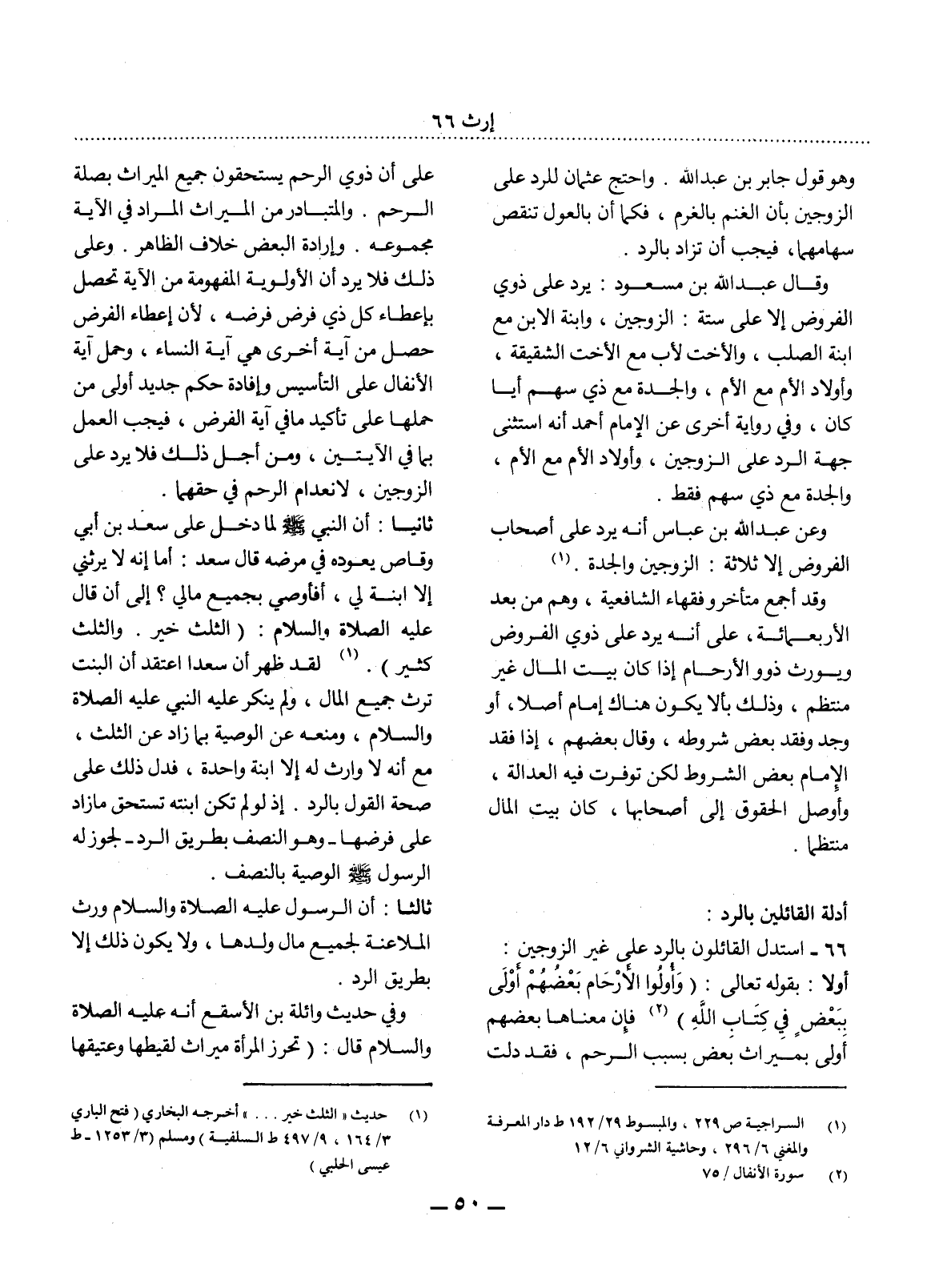 66 - اسْتَدَل الْقَائِلُونَ بِالرَّدِّ عَلَى غَيْرِ الزَّوْجَيْنِ:
