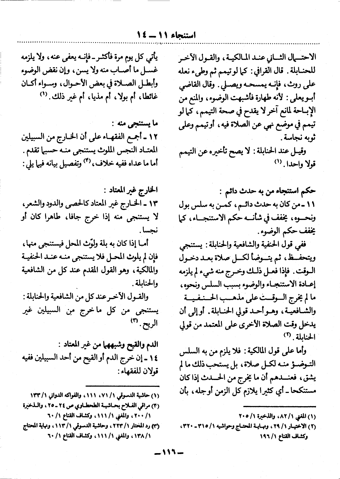 12 - أَجْمَعَ الْفُقَهَاءُ عَلَى أَنَّ الْخَارِجَ مِنَ السَّبِيلَيْنِ الْمُعْتَادَ النَّجِسَ الْمُلَوِّثَ يُسْتَنْجَى مِنْهُ حَسْبَمَا تَقَدَّمَ. أَمَّا مَا عَدَاهُ فَفِيهِ خِلاَفٌ، (2) وَتَفْصِيلٌ بَيَانُهُ فِيمَا يَلِي: