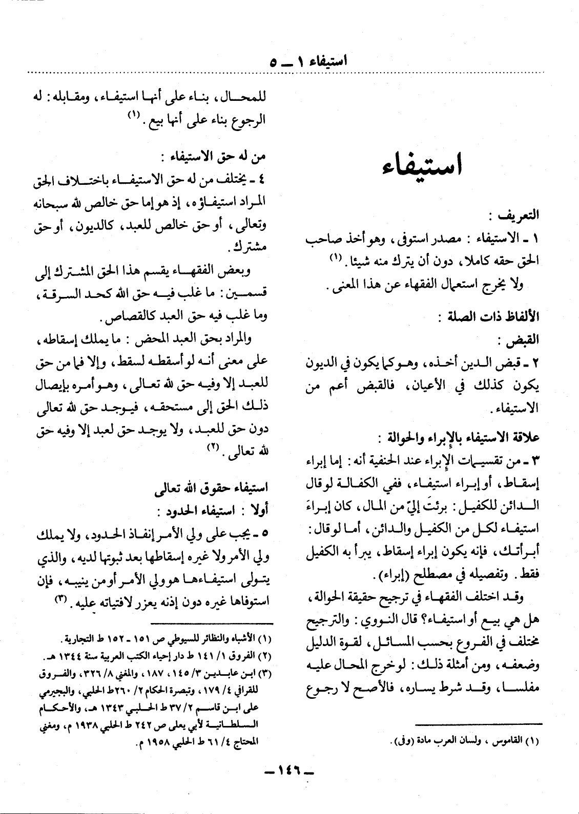 1 - الاِسْتِيفَاءُ: مَصْدَرُ اسْتَوْفَى، وَهُوَ أَخْذُ صَاحِبِ الْحَقِّ حَقَّهُ كَامِلاً، دُونَ أَنْ يَتْرُكَ مِنْهُ شَيْئًا. (1)
