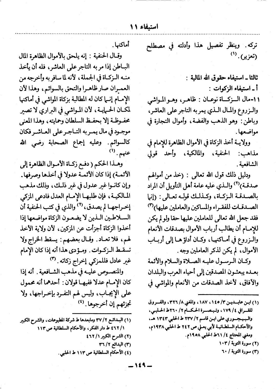 أ - اسْتِيفَاءُ الزَّكَوَاتِ: