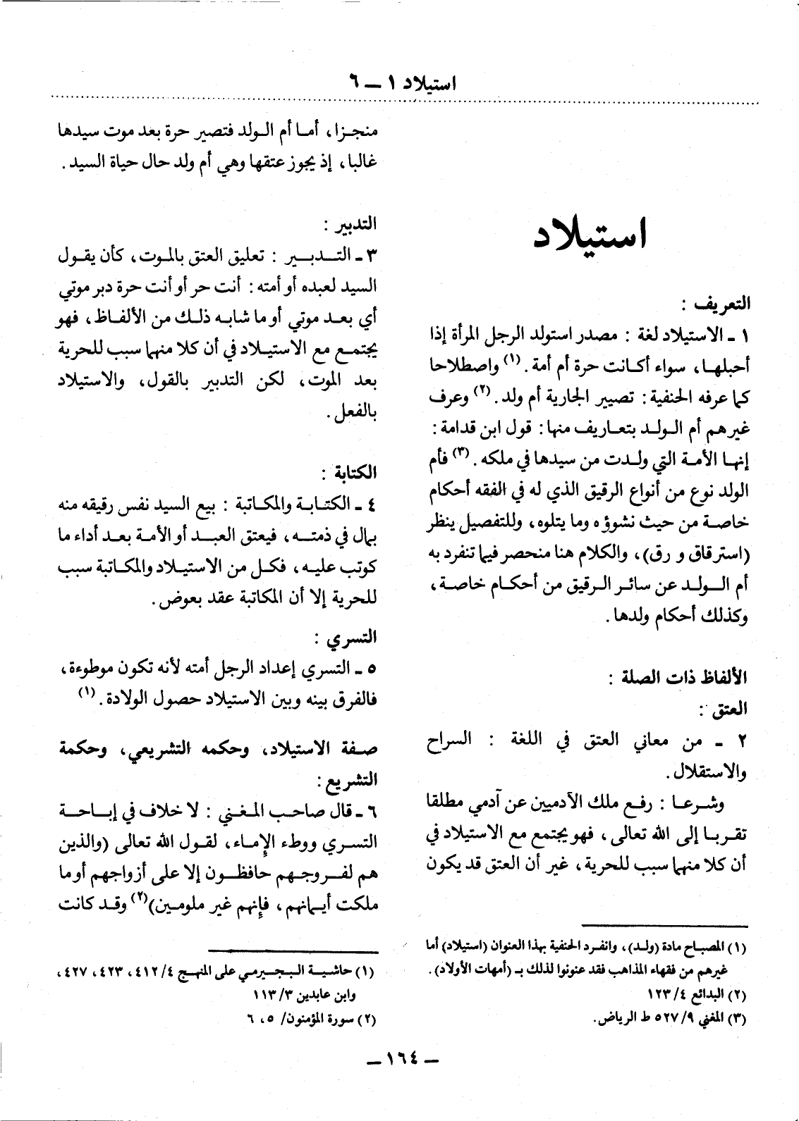 (1) المصباح مادة (ولد) ، وانفرد الحنفية بهذا العنوان (استيلاد) أما غيرهم من فقهاء المذاهب فقد عنونوا لذلك بـ (أمهات الأولاد) .
