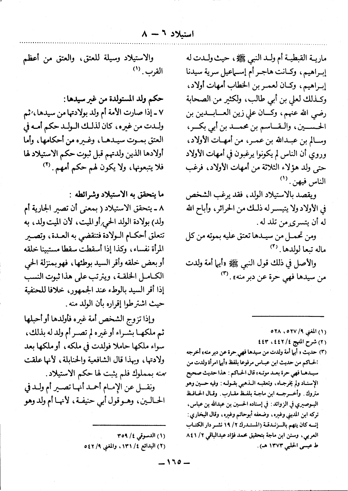 (3) حديث " أيما أمة ولدت من سيدها فهي حرة عن دبر منه " أخرجه الحاكم من حديث ابن عباس مرفوعا بلفظ " أيما امرأة ولدت من سيدها فهي حرة بعد موته " قال الحاكم: هذا حديث صحيح الإسناد ولم يخرجاه، وتعقبه الذهبي بقوله: وفيه حسين وهو متروك. وأخرجه ابن ماجه بلفظ مقارب. وقال الحافظ البوصيري في الزوائد: في إسناده الحسين بن عبد الله بن عباس، تركه ابن المديني وغيره، وضعفه أبو حاتم وغيره، وقال البخاري: إنه كان يتهم بالزندقة (المستدرك 2 / 19 نشر دار الكتاب العربي، وسنن ابن ماجه بتحقيق محمد فؤاد عبد الباقي 2 / 841 ط عيسى الحلبي 1373 هـ) .