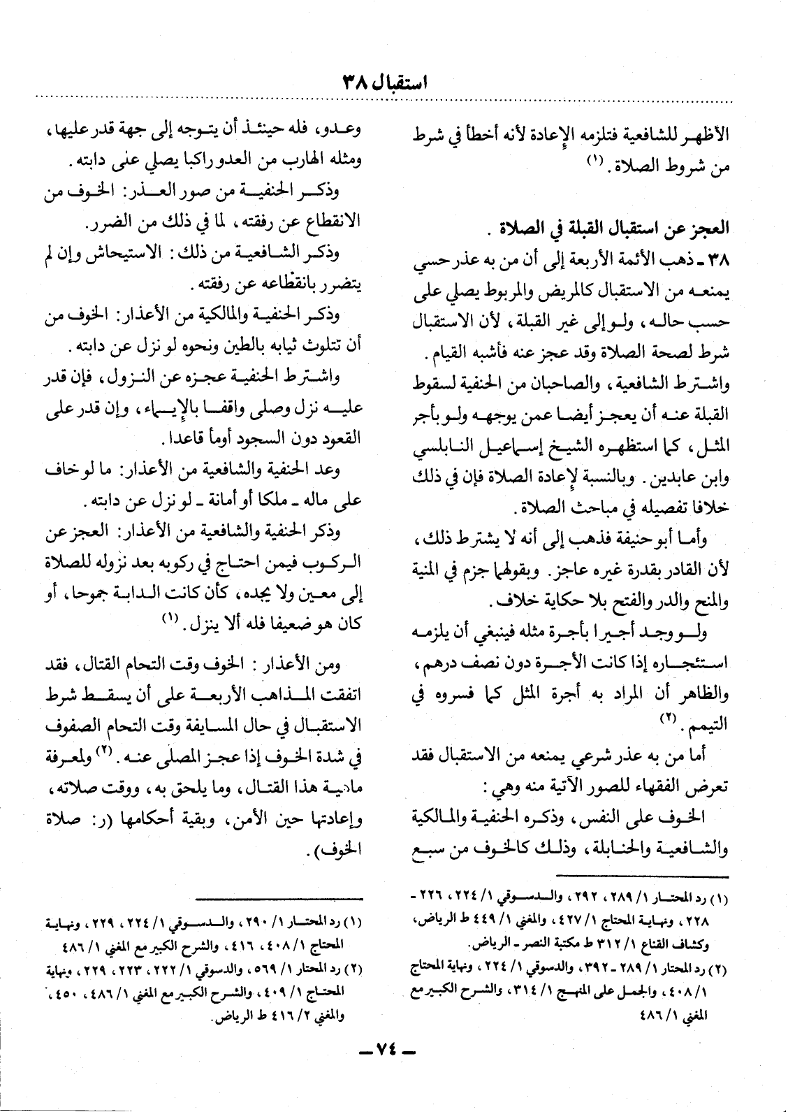 (2) رد المحتار 1 / 289 - 392، والدسوقي 1 / 224، ونهاية المحتاج 1 / 408، والجمل على المنهج 1 / 314، والشرح الكبير مع المغني 1 / 486.