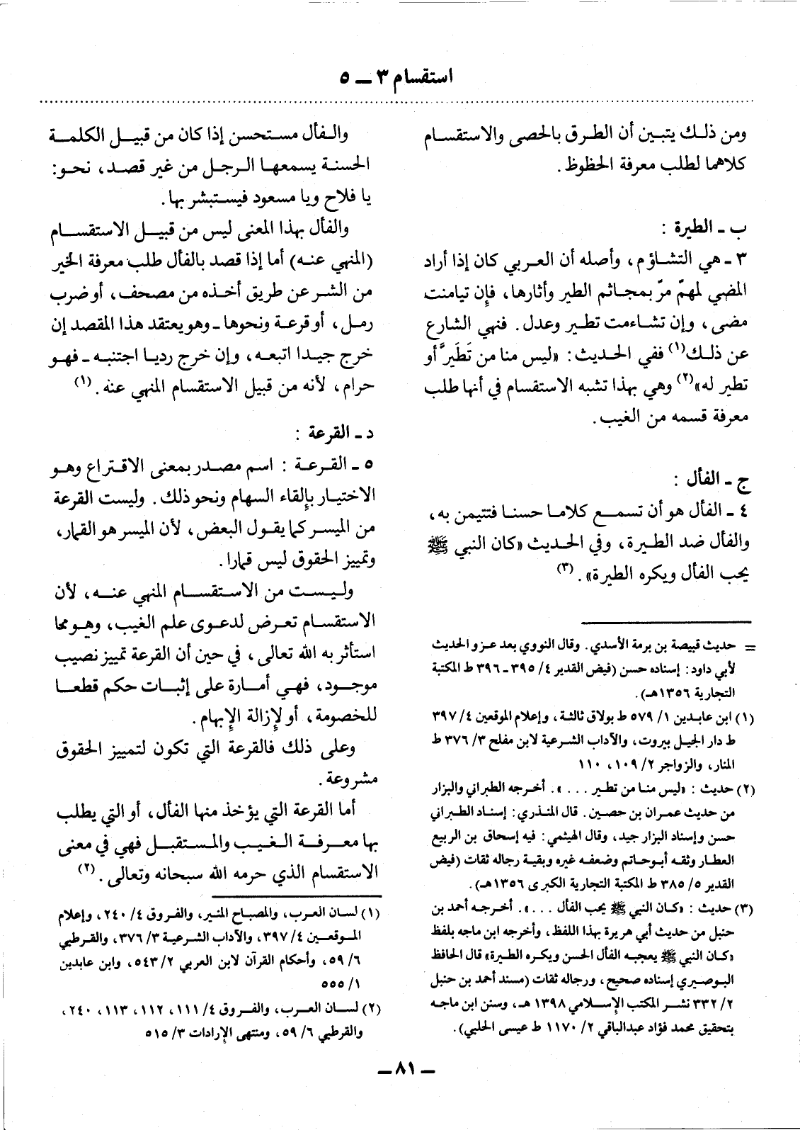 (1) لسان العرب، والمصباح المنير، والفروق 4 / 240، وإعلام الموقعين 4 / 397، والآداب الشرعية 3 / 376، والقرطبي 6 / 59، وأحكام القرآن لابن العربي 2 / 543، وابن عابدين 1 / 555.