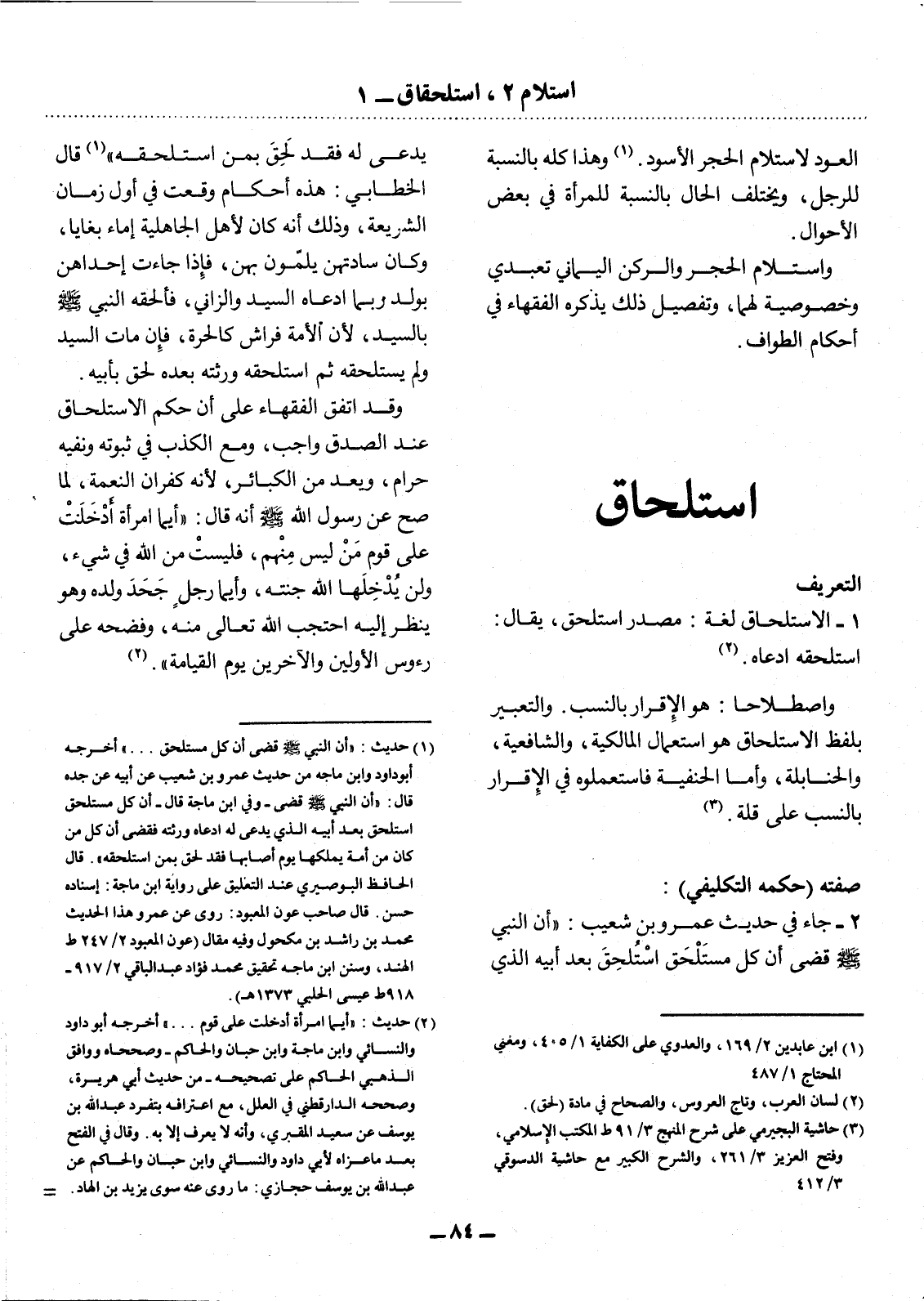 2 - جَاءَ فِي حَدِيثِ عَمْرِو بْنِ شُعَيْبٍ: أَنَّ النَّبِيَّ صَلَّى اللَّهُ عَلَيْهِ وَسَلَّمَ قَضَى أَنَّ كُل مُسْتَلْحَقٍ اُسْتُلْحِقَ بَعْدَ أَبِيهِ الَّذِي