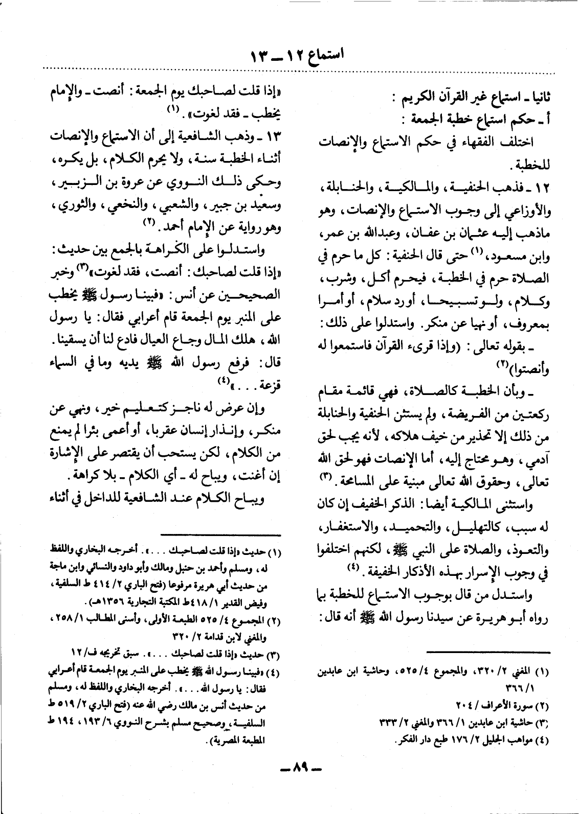أ - حُكْمُ اسْتِمَاعِ خُطْبَةِ الْجُمُعَةِ: