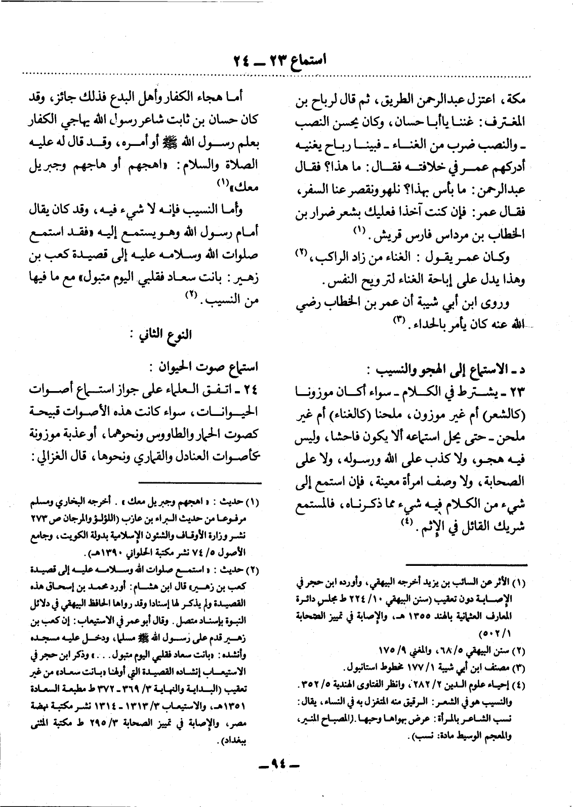 (4) إحياء علوم الدين 2 / 282، وانظر الفتاوى الهندية 5 / 352. والنسيب هو في الشعر: الرقيق منه المتغزل به في النساء، يقال: نسب الشاعر بالمرأة: عرض بهواها وحبها. (المصباح المنير، والمعجم الوسيط مادة: نسب) .
