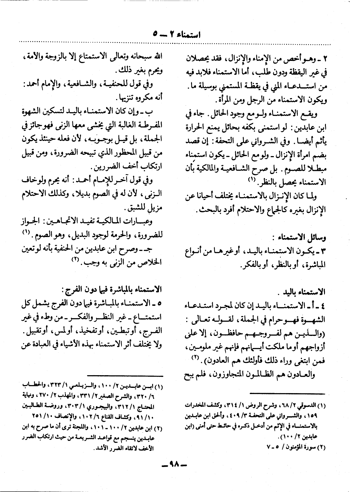 (1) الدسوقي 2 / 68، وشرح الروض 1 / 314، وكشف المخدرات 159، والشرواني على التحفة 3 / 409، وألحق ابن عابدين بالاستمناء في الإثم من أدخل ذكره في حائط حتى أمنى (ابن عابدين 2 / 100) .
