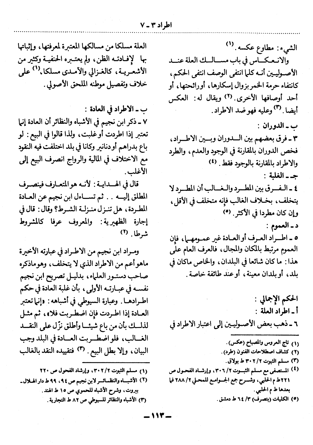 3 - فَرَّقَ بَعْضُهُمْ بَيْنَ الدَّوَرَانِ وَبَيْنَ الاِطِّرَادِ، فَخَصَّ الدَّوَرَانَ بِالْمُقَارَنَةِ فِي الْوُجُودِ وَالْعَدَمِ، وَالطَّرْدَ وَالاِطِّرَادَ بِالْمُقَارَنَةِ بِالْوُجُودِ فَقَطْ. (4)