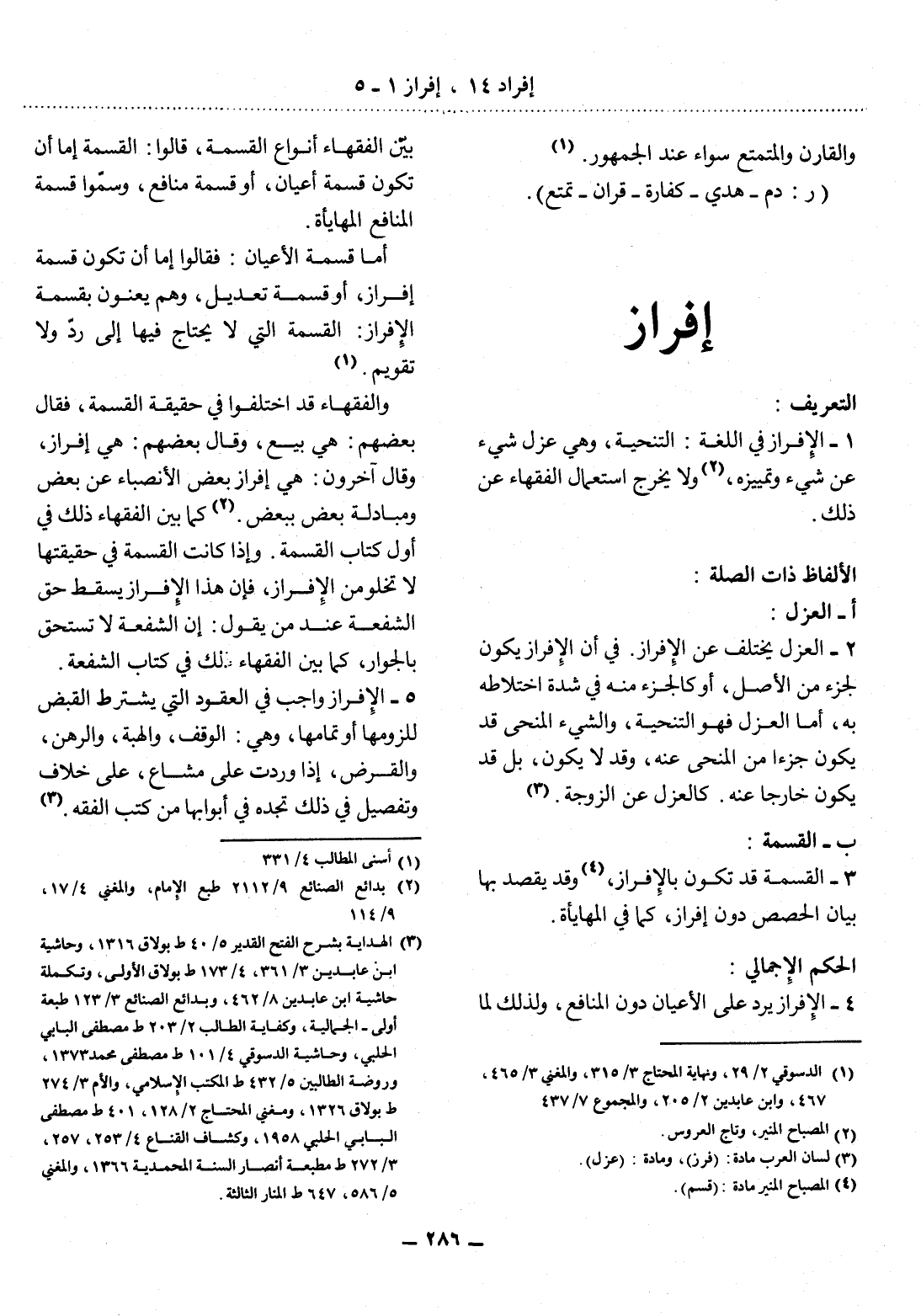 (3) لسان العرب مادة: (فرز) ، ومادة: (عزل) .