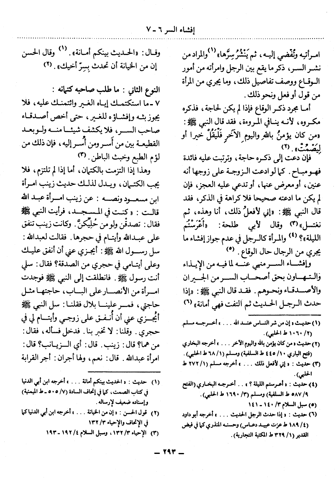 امْرَأَتِهِ وَتُفْضِي إِلَيْهِ، ثُمَّ يَنْشُرُ سِرَّهَا (1) وَالْمُرَادُ مِنْ نَشْرِ السِّرِّ، ذِكْرُ مَا يَقَعُ بَيْنَ الرَّجُل وَامْرَأَتِهِ مِنْ أُمُورِ الْوَقَاعِ وَوَصْفِ تَفَاصِيل ذَلِكَ، وَمَا يَجْرِي مِنَ الْمَرْأَةِ مِنْ قَوْلٍ أَوْ فِعْلٍ وَنَحْوِ ذَلِكَ.