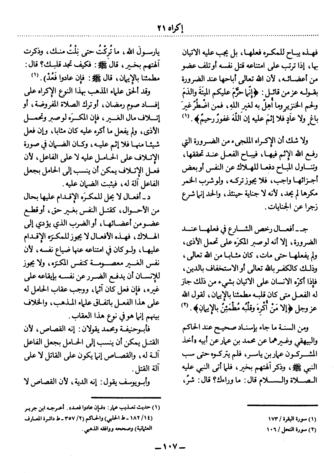 (1) حديث تعذيب عمار: " فإن عادوا فعد ". أخرجه ابن جرير (14 / 182 - ط الحلبي) والحاكم (2 / 357 - ط دائرة المعارف العثمانية) وصححه ووافقه الذهبي.