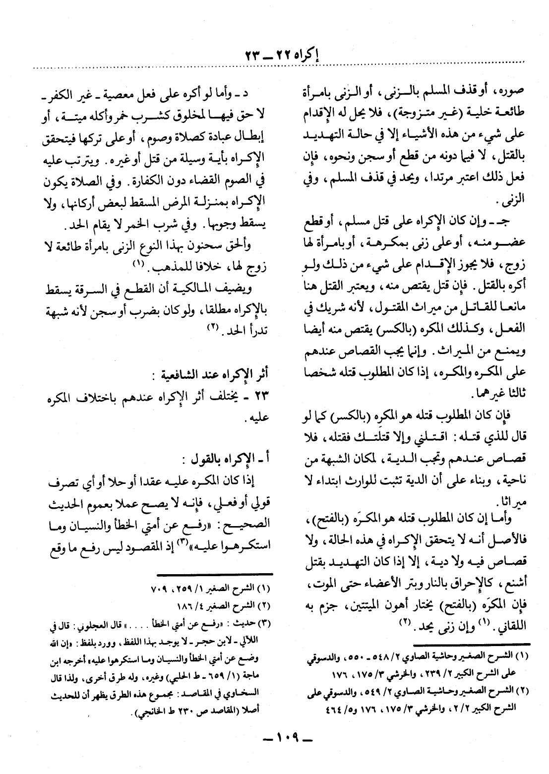 23 - يَخْتَلِفُ أَثَرُ الإِْكْرَاهِ عِنْدَهُمْ بِاخْتِلاَفِ الْمُكْرَهِ عَلَيْهِ.
