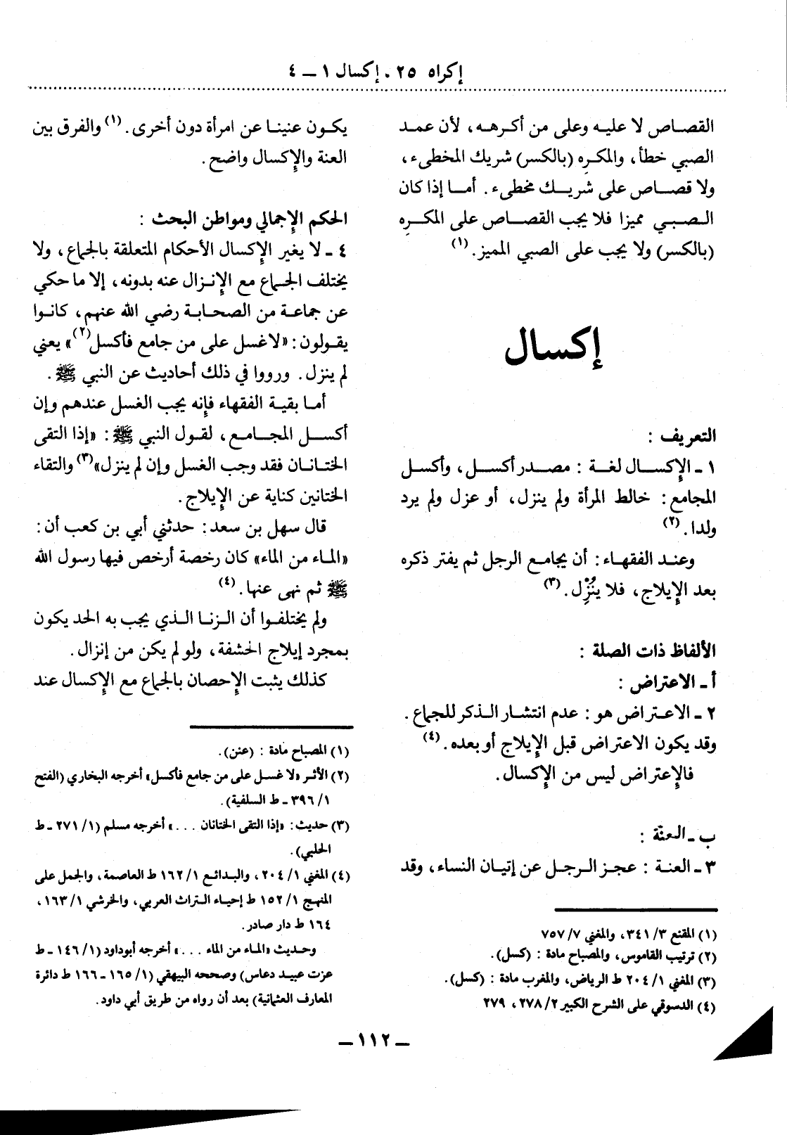 1 - الإِْكْسَال لُغَةً: مَصْدَرُ أَكْسَل، وَأَكْسَل الْمُجَامِعُ: خَالَطَ الْمَرْأَةَ وَلَمْ يُنْزِل، أَوْ عَزَل وَلَمْ يُرِدْ وَلَدًا. (2)