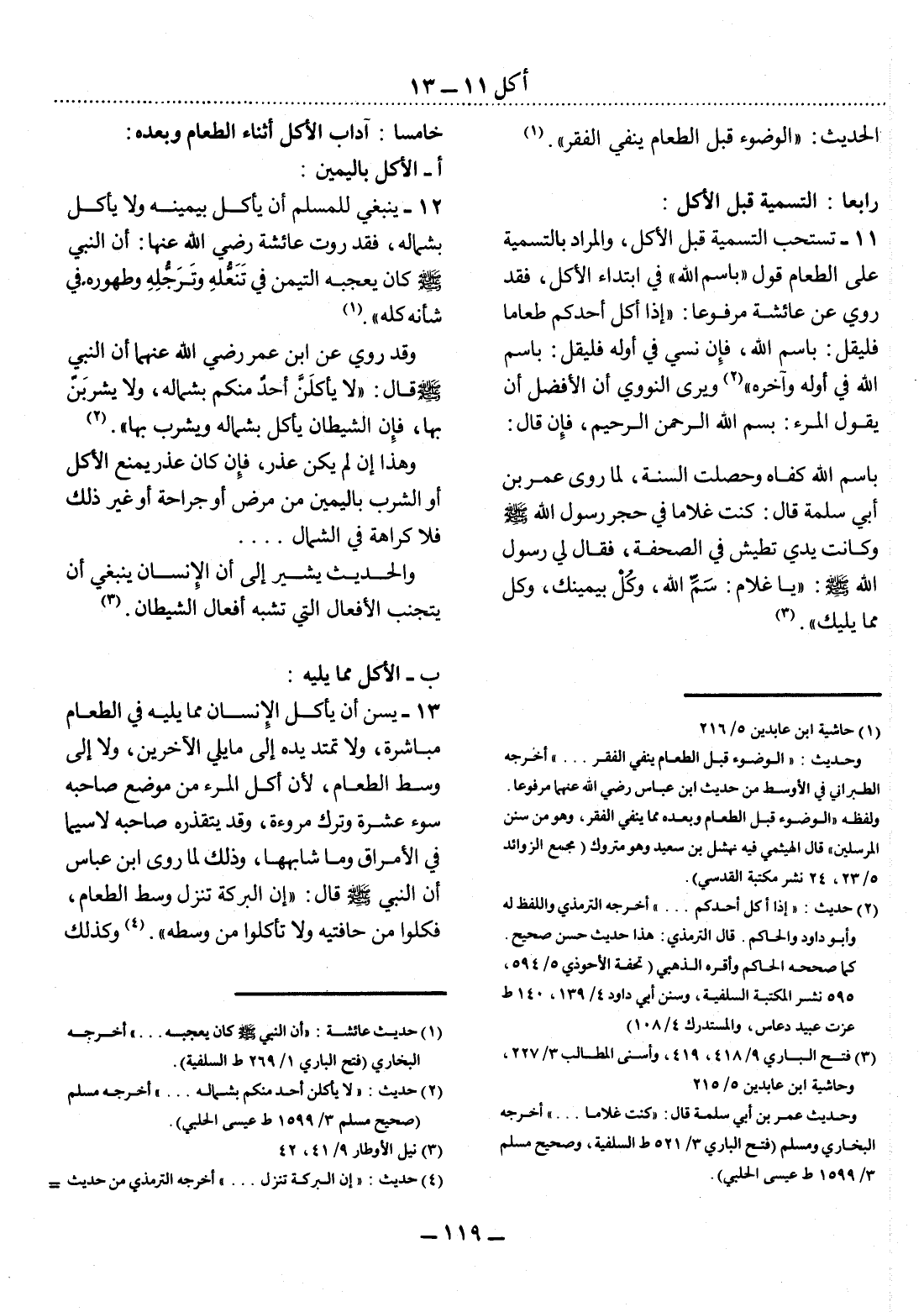 (1) حاشية ابن عابدين 55 / 216 وحديث: " الوضوء قبل الطعام ينفي الفقر. . . " أخرجه الطبراني في الأوسط من حديث ابن عباس رضي الله عنهما مرفوعا. ولفظه " الوضوء قبل الطعام وبعده مما ينفي الفقر، وهو من سنن المرسلين " قال الهيثمي فيه نهشل بن سعيد وهو متروك (مجمع الزوائد 5 / 23، 24 نشر مكتبة القدسي) .