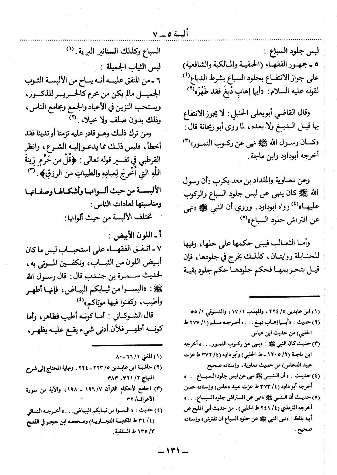 (4) حديث: " البسوا من ثيابكم البياض. . . " أخرجه النسائي (4 / 34 ط المكتبة التجارية) وصححه ابن حجر في الفتح 3 / 135 ط السلفية.