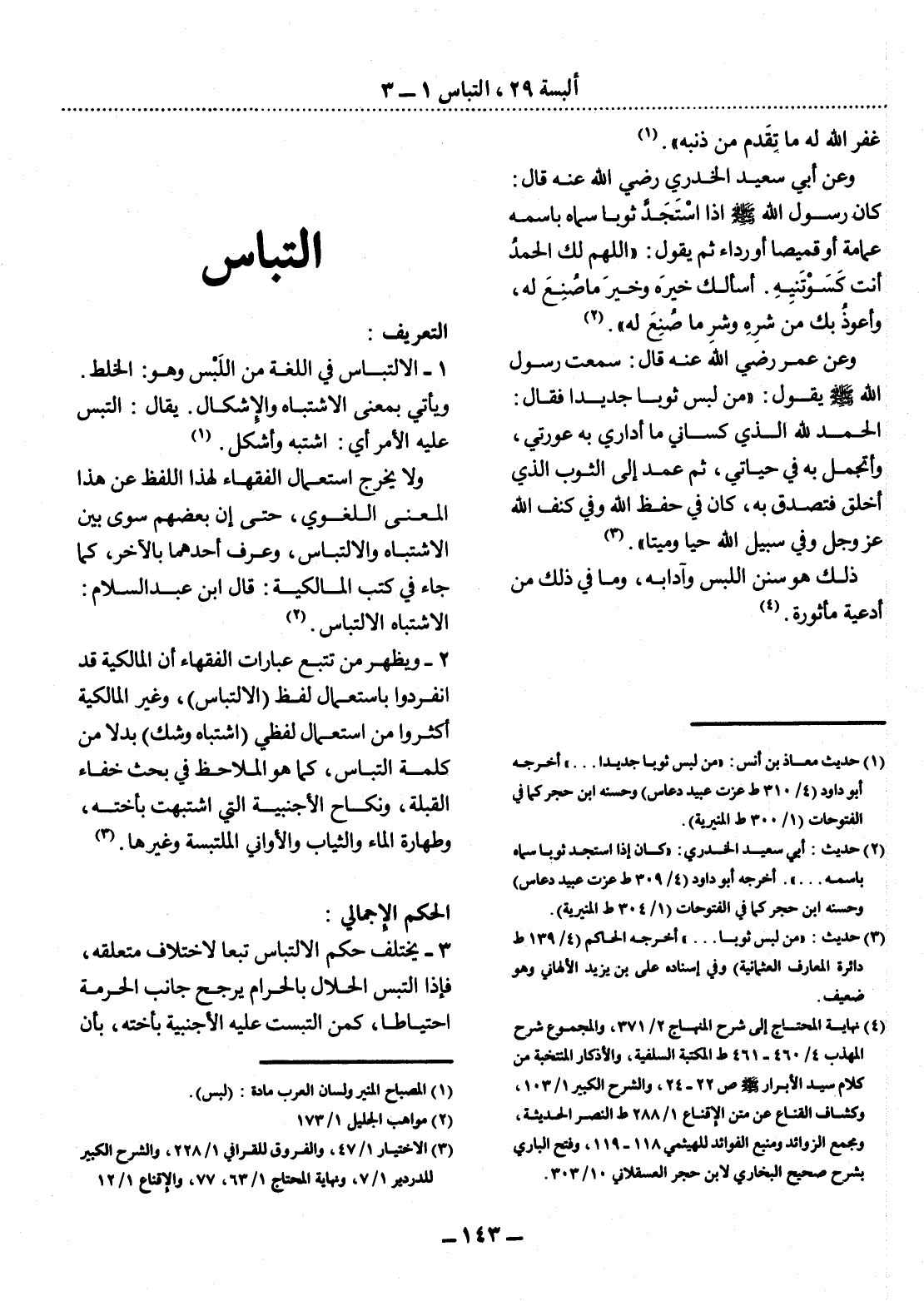 ذَلِكَ هُوَ سُنَنُ اللُّبْسِ وَآدَابُهُ، وَمَا فِي ذَلِكَ مِنْ أَدْعِيَةٍ مَأْثُورَةٍ (4) .