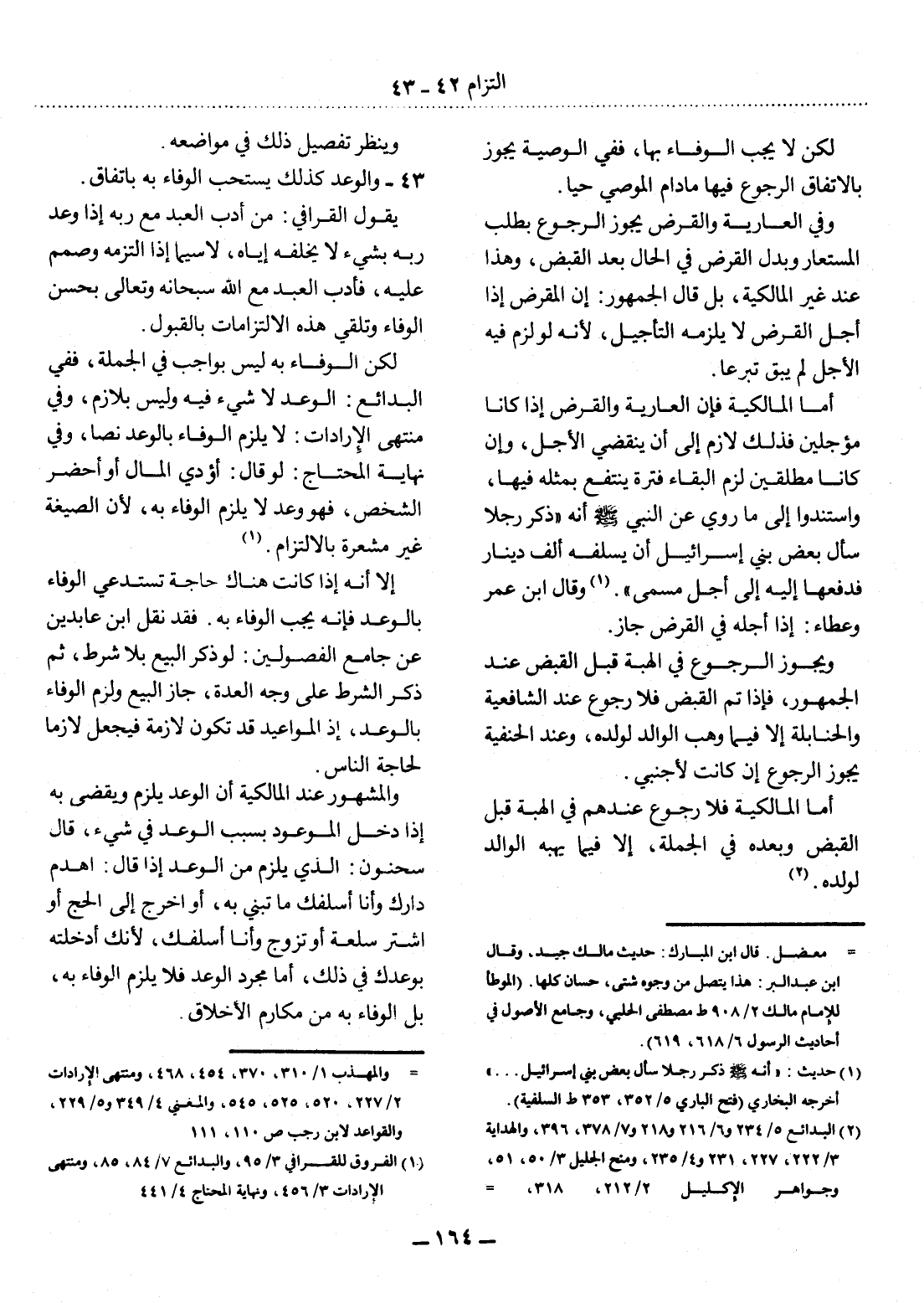 43 - وَالْوَعْدُ كَذَلِكَ يُسْتَحَبُّ الْوَفَاءُ بِهِ بِاتِّفَاقٍ.