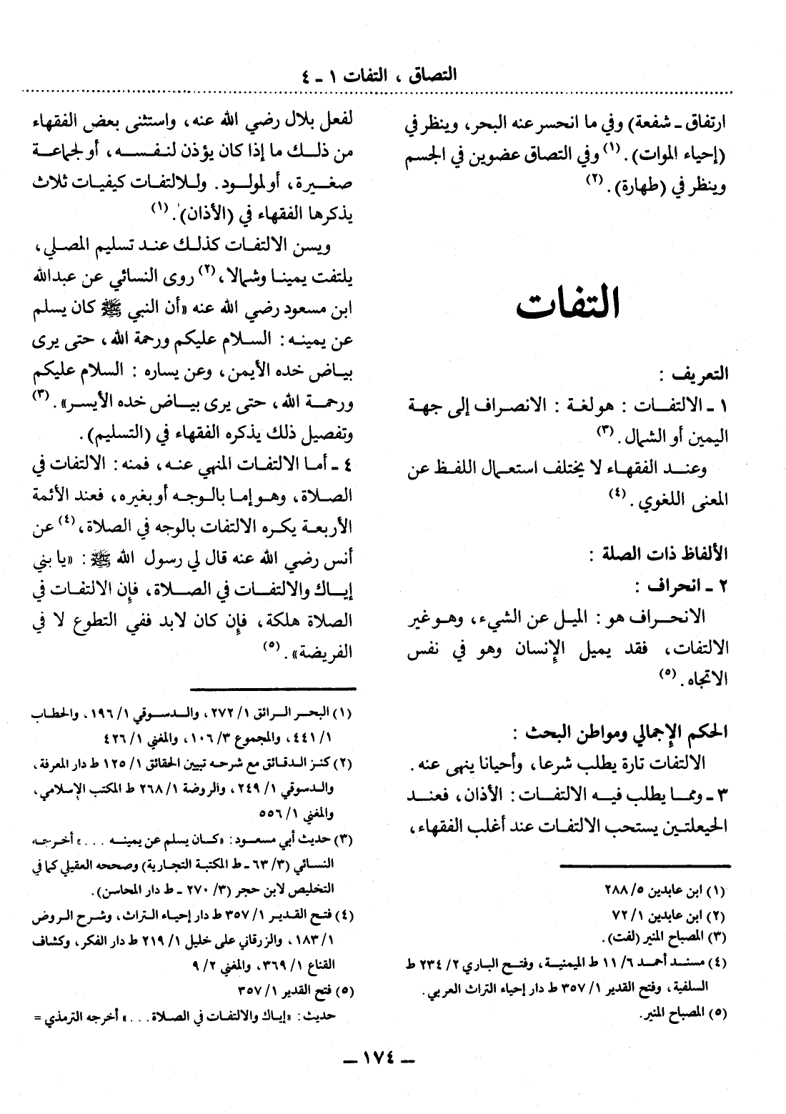 1 - الاِلْتِفَاتُ: هُوَ لُغَةً: الاِنْصِرَافُ إِلَى جِهَةِ الْيَمِينِ أَوِ الشِّمَال. (3)