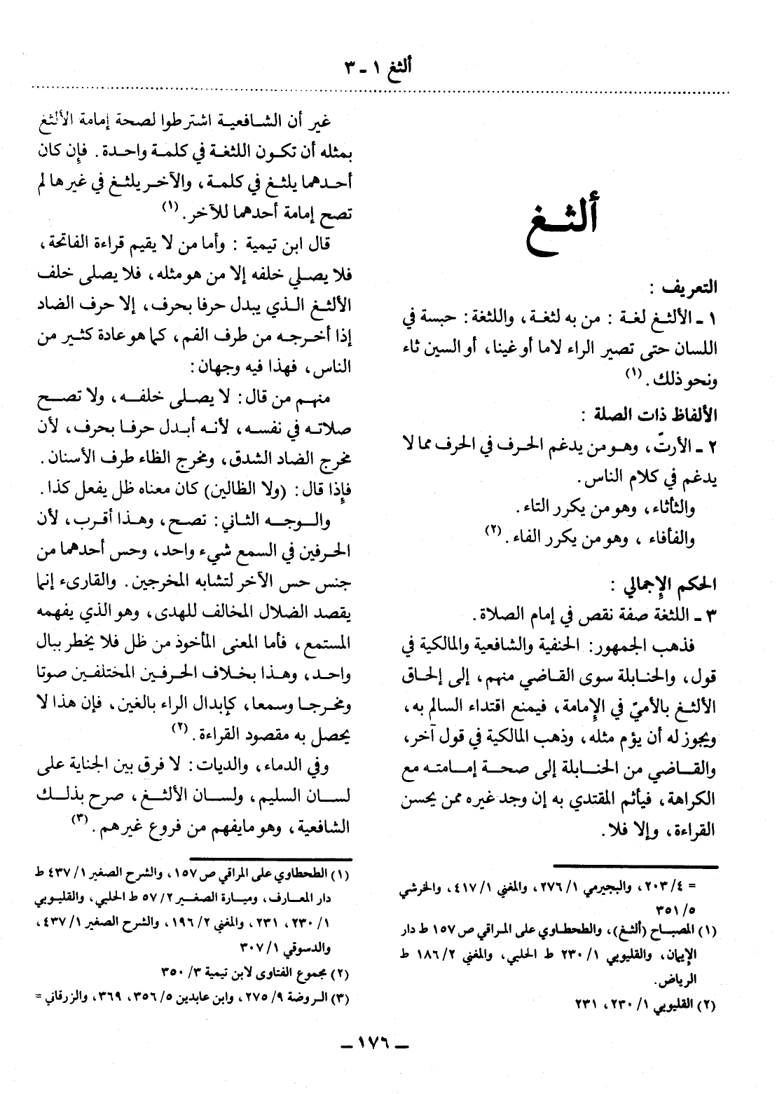 (1) المصباح (ألثغ) ، والطحطاوي على المراقي ص 157 ط دار الإيمان، والقليوبي 1 / 230 ط الحلبي، والمغني 2 / 186 ط الرياض.