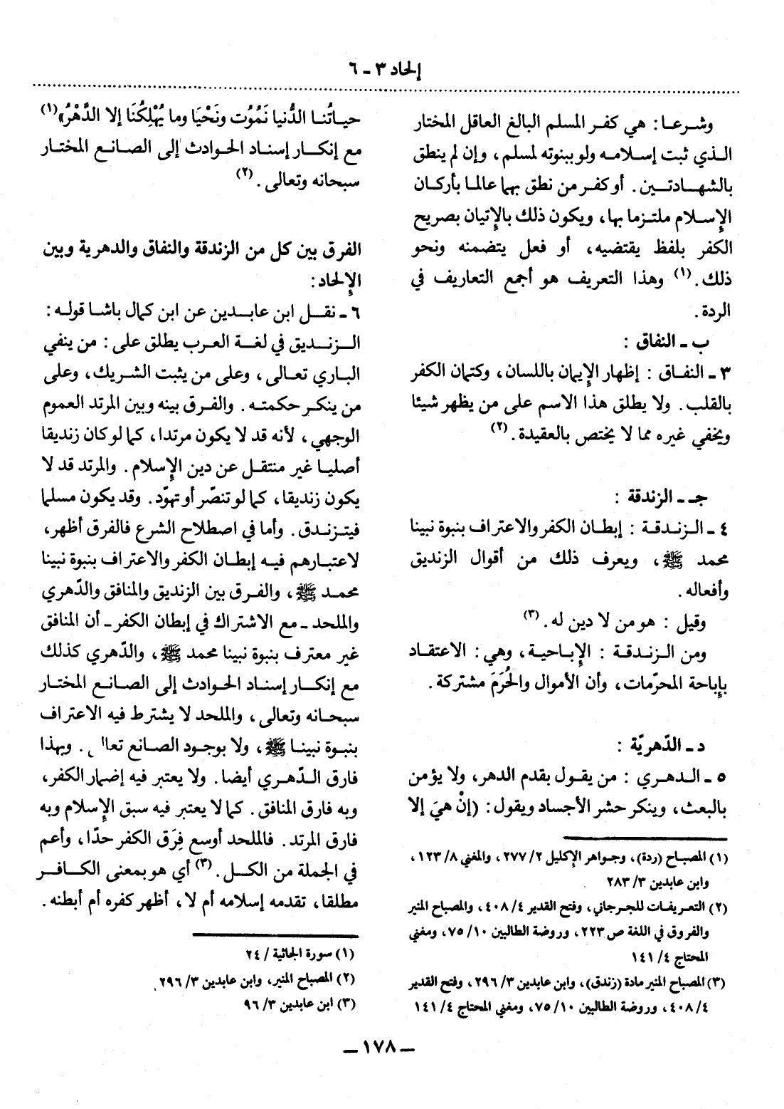 (3) المصباح المنير مادة (زندق) ، وابن عابدين 3 / 296، وفتح القدير 4 / 408، وروضة الطالبين 10 / 75، ومغني المحتاج 4 / 141.