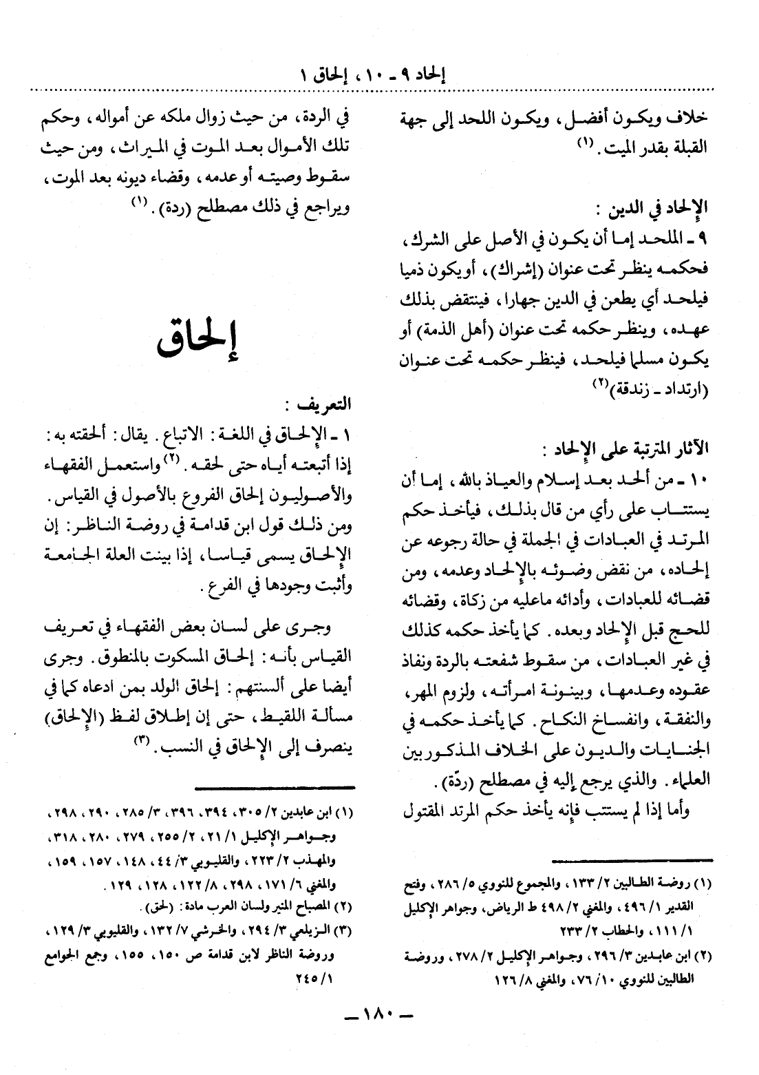 10 - مَنْ أَلْحَدَ بَعْدَ إِسْلاَمٍ وَالْعِيَاذُ بِاَللَّهِ، إِمَّا أَنْ يُسْتَتَابَ عَلَى رَأْيِ مَنْ قَال بِذَلِكَ، فَيَأْخُذَ حُكْمَ الْمُرْتَدِّ فِي الْعِبَادَاتِ فِي الْجُمْلَةِ فِي حَالَةِ رُجُوعِهِ عَنْ إِلْحَادِهِ، مِنْ نَقْضِ وُضُوئِهِ بِالإِْلْحَادِ وَعَدَمِهِ، وَمِنْ قَضَائِهِ لِلْعِبَادَاتِ، وَأَدَائِهِ مَا عَلَيْهِ مِنْ زَكَاةٍ، وَقَضَائِهِ لِلْحَجِّ قَبْل الإِْلْحَادِ وَبَعْدَهُ. كَمَا يَأْخُذُ حُكْمَهُ كَذَلِكَ فِي غَيْرِ الْعِبَادَاتِ، مِنْ سُقُوطِ شُفْعَتِهِ بِالرِّدَّةِ وَنَفَاذِ عُقُودِهِ وَعَدَمِهَا، وَبَيْنُونَةِ امْرَأَتِهِ، وَلُزُومِ الْمَهْرِ، وَالنَّفَقَةِ، وَانْفِسَاخِ النِّكَاحِ. كَمَا يَأْخُذُ حُكْمَهُ فِي الْجِنَايَاتِ وَالدُّيُونِ عَلَى الْخِلاَفِ الْمَذْكُورِ بَيْنَ الْعُلَمَاءِ. وَاَلَّذِي يُرْجَعُ إِلَيْهِ فِي مُصْطَلَحِ (رِدَّة) .