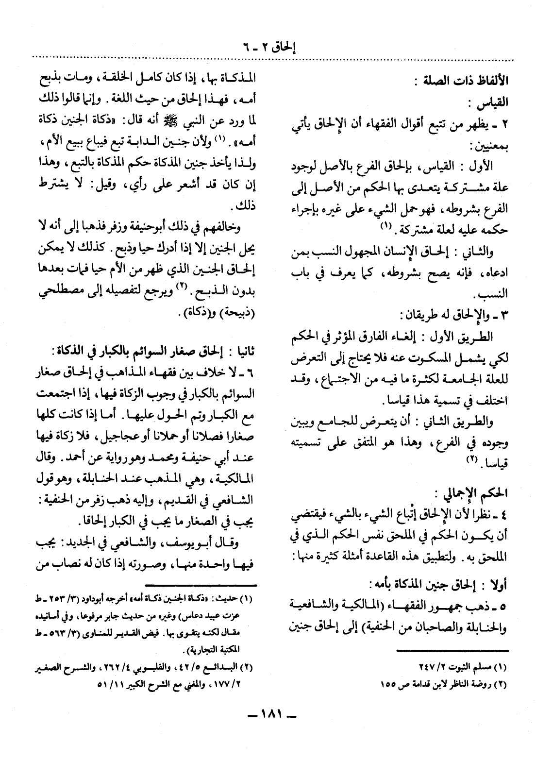 4 - نَظَرًا لأَِنَّ الإِْلْحَاقَ إِتْبَاعُ الشَّيْءِ بِالشَّيْءِ فَيَقْتَضِي أَنْ يَكُونَ الْحُكْمُ فِي الْمُلْحَقِ نَفْسَ الْحُكْمِ الَّذِي فِي الْمُلْحَقِ بِهِ. وَلِتَطْبِيقِ هَذِهِ الْقَاعِدَةِ أَمْثِلَةٌ كَثِيرَةٌ مِنْهَا: