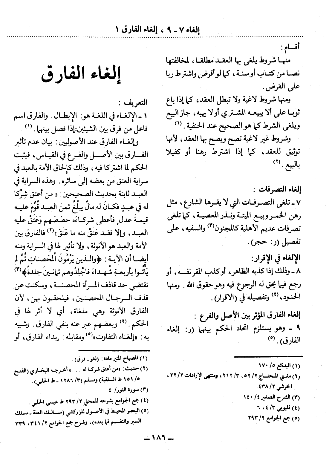 1 - الإِْلْغَاءُ فِي اللُّغَةِ هُوَ: الإِْبْطَال. وَالْفَارِقُ اسْمُ فَاعِلٍ مِنْ فَرَّقَ بَيْنَ الشَّيْئَيْنِ: إِذَا فَصَل بَيْنَهُمَا. (1)