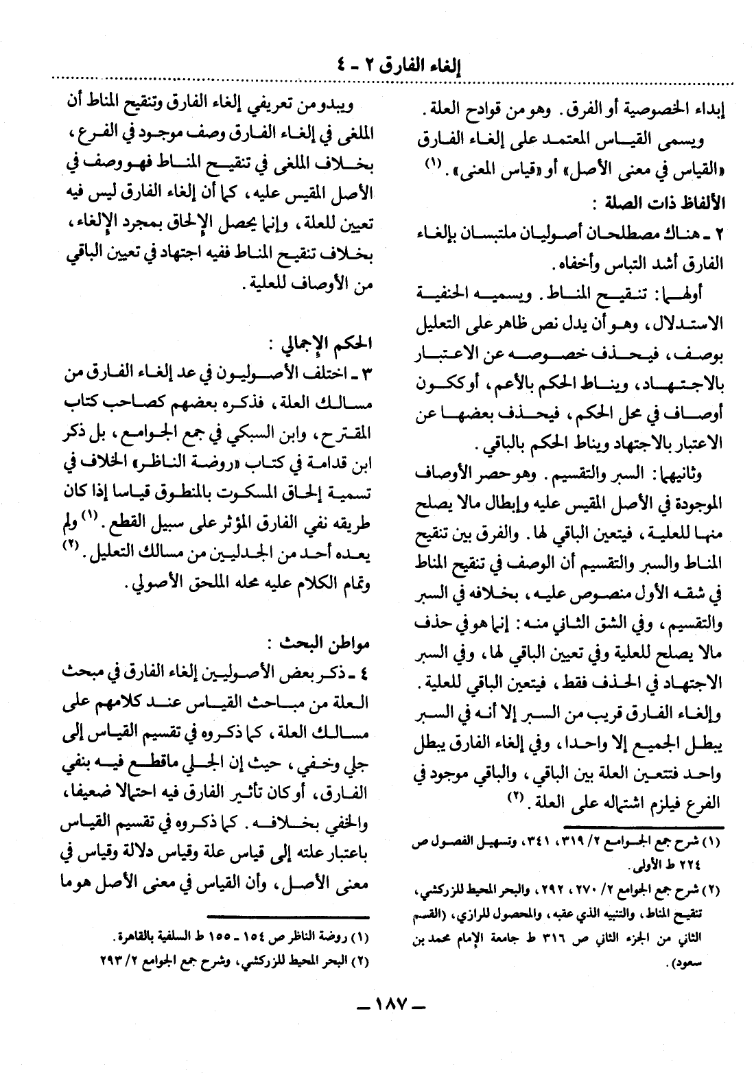 (2) شرح جمع الجوامع 2 / 270، 292، والبحر المحيط للزركشي، تنقيح المناط، والتنبيه الذي عقبه، والمحصول للرازي، (القسم الثاني من الجزء الثاني ص 316 ط جامعة الإمام محمد بن سعود)