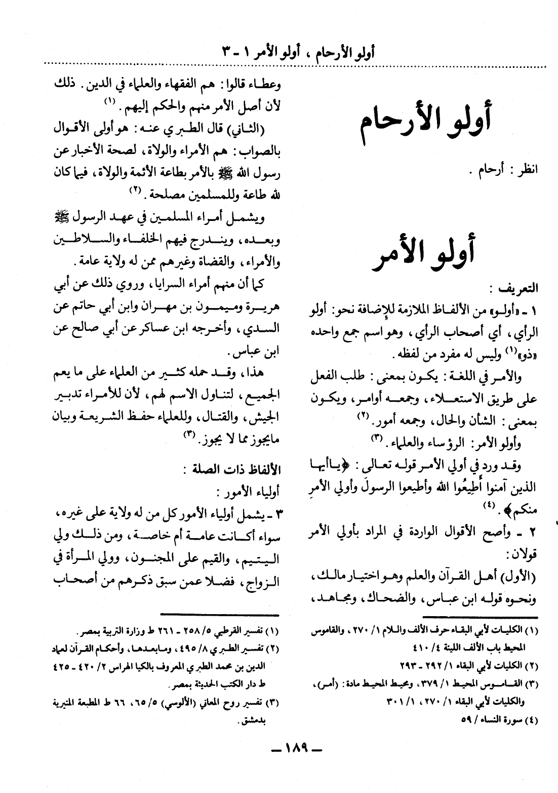 وَأُولُو الأَْمْرِ: الرُّؤَسَاءُ وَالْعُلَمَاءُ (3) .