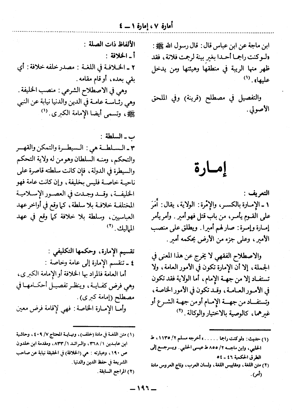 4 - تَنْقَسِمُ الإِْمَارَةُ إِلَى عَامَّةٍ وَخَاصَّةٍ: