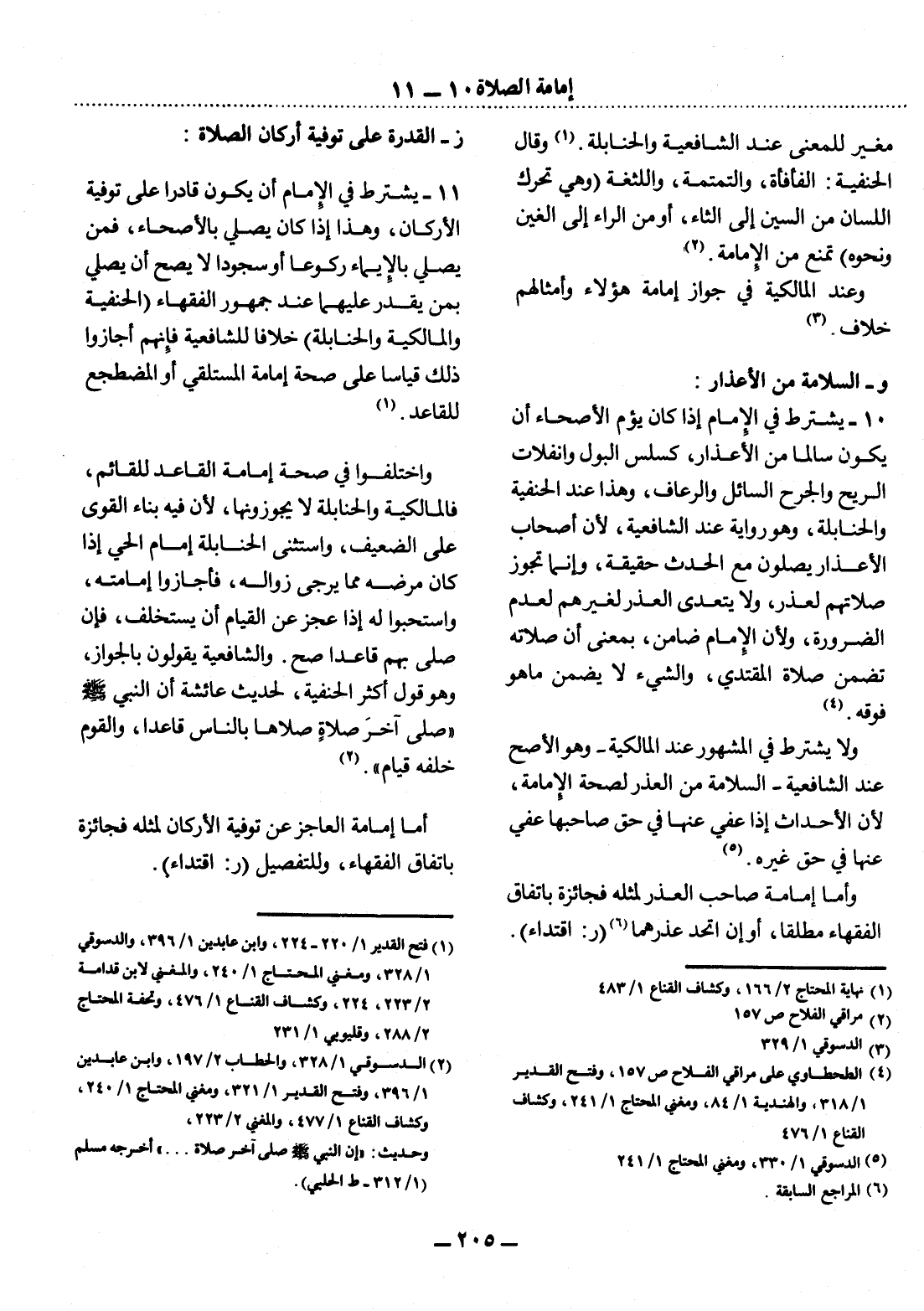 11 - يُشْتَرَطُ فِي الإِْمَامِ أَنْ يَكُونَ قَادِرًا عَلَى تَوْفِيَةِ الأَْرْكَانِ، وَهَذَا إِذَا كَانَ يُصَلِّي بِالأَْصِحَّاءِ، فَمَنْ يُصَلِّي بِالإِْيمَاءِ رُكُوعًا أَوْ سُجُودًا لاَ يَصِحُّ أَنْ يُصَلِّيَ بِمَنْ يَقْدِرُ عَلَيْهِمَا عِنْدَ جُمْهُورِ الْفُقَهَاءِ (الْحَنَفِيَّةِ وَالْمَالِكِيَّةِ وَالْحَنَابِلَةِ) خِلاَفًا لِلشَّافِعِيَّةِ فَإِنَّهُمْ أَجَازُوا ذَلِكَ قِيَاسًا عَلَى صِحَّةِ إِمَامَةِ الْمُسْتَلْقِي أَوِ الْمُضْطَجِعِ لِلْقَاعِدِ (1) .