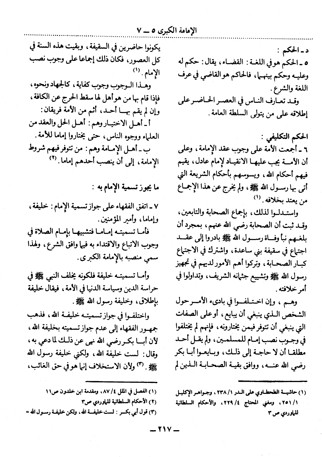 (1) حاشية الطحطاوي على الدر 1 / 238، وجواهر الإكليل 1 / 251، ومغني المحتاج 4 / 229، والأحكام السلطانية للماوردي ص 3