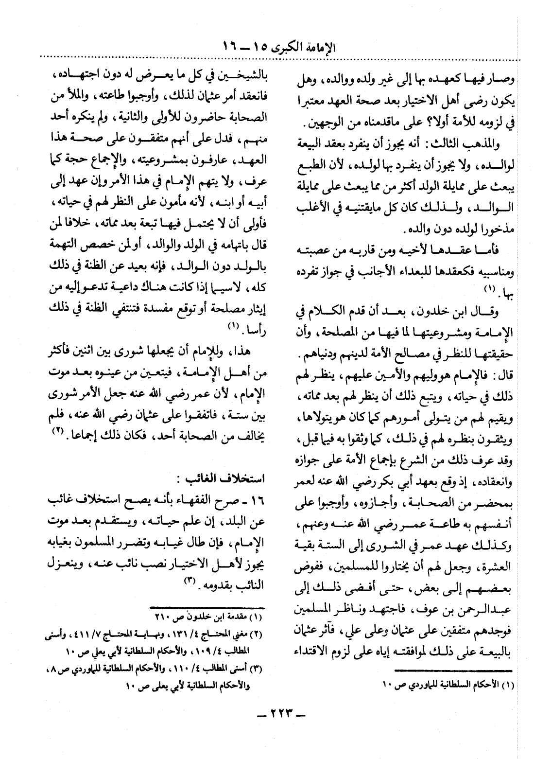 (3) أسنى المطالب 4 / 110، والأحكام السلطانية للماوردي ص 8، والأحكام السلطانية لأبي يعلى ص 10