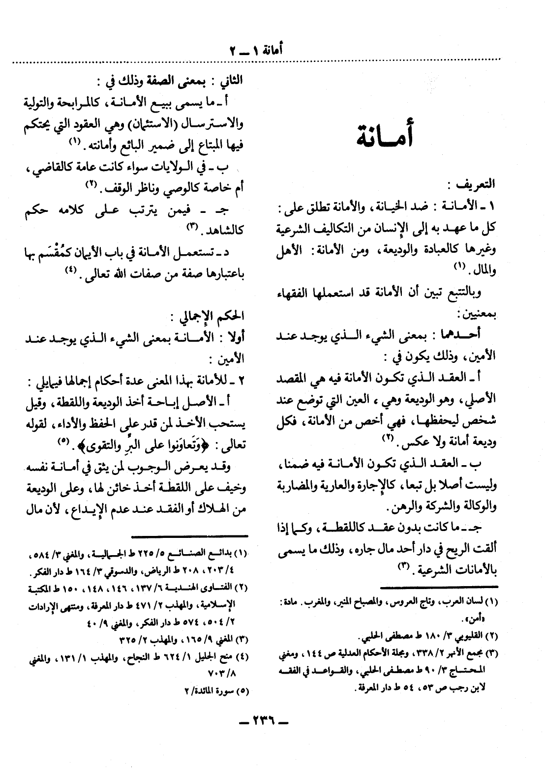 (1) لسان العرب، وتاج العروس، والمصباح المنير، والمغرب. مادة: " أمن "
