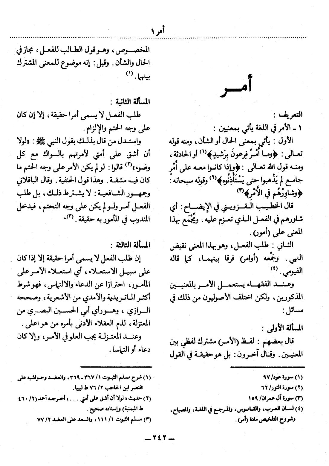 (4) لسان العرب، والقاموس، والمرجع في اللغة، والمصباح، وشروح التلخيص مادة (أمر)