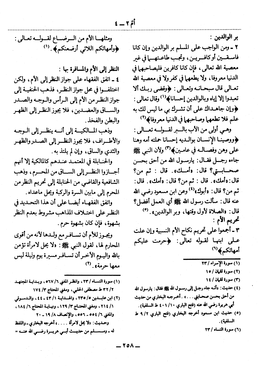 (1) سورة النساء / 23، وانظر المغني 6 / 567، وبداية المجتهد 2 / 32 ط مصطفى الحلبي، ومغني المحتاج 3 / 174